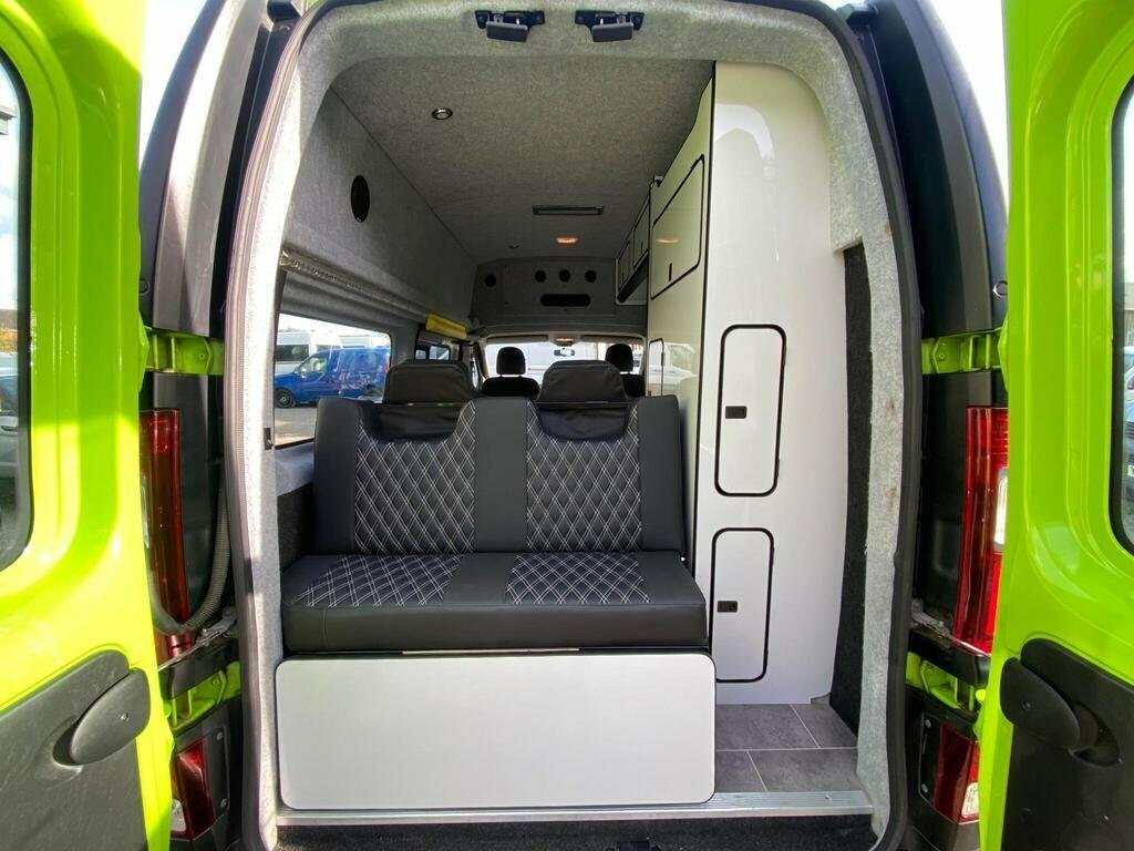 ****UNDER CONVERSION**** PODIUM PCL IS DELIGHTED TO PRESENT A RENAULT TRAFIC HIGHROOF CONVERTED FOR 2 WITH A BRAND NEW ROCK AND ROLL BED THAT CAN SLEEP 2 PEOPLE IN COMFORT, A BEAUTIFULLY LAYED OUT 2 BERTH WITH 4 SEAT BELTS, ALL ELECTRICAL CONNECTIONS WIRED, WITH LED LIGHTS, REAR ELECTRIC HOOKUP, WEBESTO DIESEL HEATER FITTED, BRAND NEW 2 BURNER STOVE WITH GAS CONNECTION WITH SINK INSTALLED WITH FRESH WATER TANK, FULLY WORKING CAB AIR CONDITIONING, REAR CAN INSULATED AND LINED, AMPLE STORAGE, PRINTED SERVICE HISTORY WITH 3 SERVICES, JUST BEEN FULL SERVICED, MOT VALID UNTIL 08/08/2026, 1 OWNER SINCE NEW. Step into the world of Podium PCL, where quality, trust, and expertise come together to create a refined vehicle-buying experience. We proudly showcase a wide selection of over 200 meticulously handpicked vehicles, including Cars, SUVs, Vans, Motorhomes, and Campervans. Each vehicle is carefully sourced by our expert purchasing team, backed by over 12 years of industry experience, and undergoes thorough checks to ensure the highest standards. All our vehicles are HPI clear and supported by the AA Dealer Promise, offering complete peace of mind with every purchase. Enjoy the added benefit of 12 months of complimentary AA breakdown cover, along with a 3-month warranty included within the advertised price, extendable up to 3 years for long-term reassurance. We also offer swift vehicle deliveryfree within a 150-mile radius and just ?2 per mile thereafter (Scotland rates may vary). O 12V Power Socket - Front, 16in Steel Wheel with Delos Wheel Trims, ABS with EBD - Electronic Brake Force Di, Airbags - Driver, Alarm, Anchorage Points x18, Bamboo Green, Bulkhead - Deleted, Bulkhead - Full Steel, Closed Glovebox, DAB Radio with Bluetooth - USB Socket an, Deadlocking, Door Mirrors - Heated with Electric Adju, Drivers Seat with Armrest - Height Adjus, Electric Windows - Front, Electronic Engine Immobiliser, ESC - Electronic Stability Control with , Gear Change Indicator, Left Side Loading Door - Unglazed, Manual Air Conditioning with Pollen Filt, NO MediaNav or Renault R-Link 7in Touch , Parking Sensors - Rear, Passenger Bench Seat, Power Assisted Steering, Rear Doors - 180 De