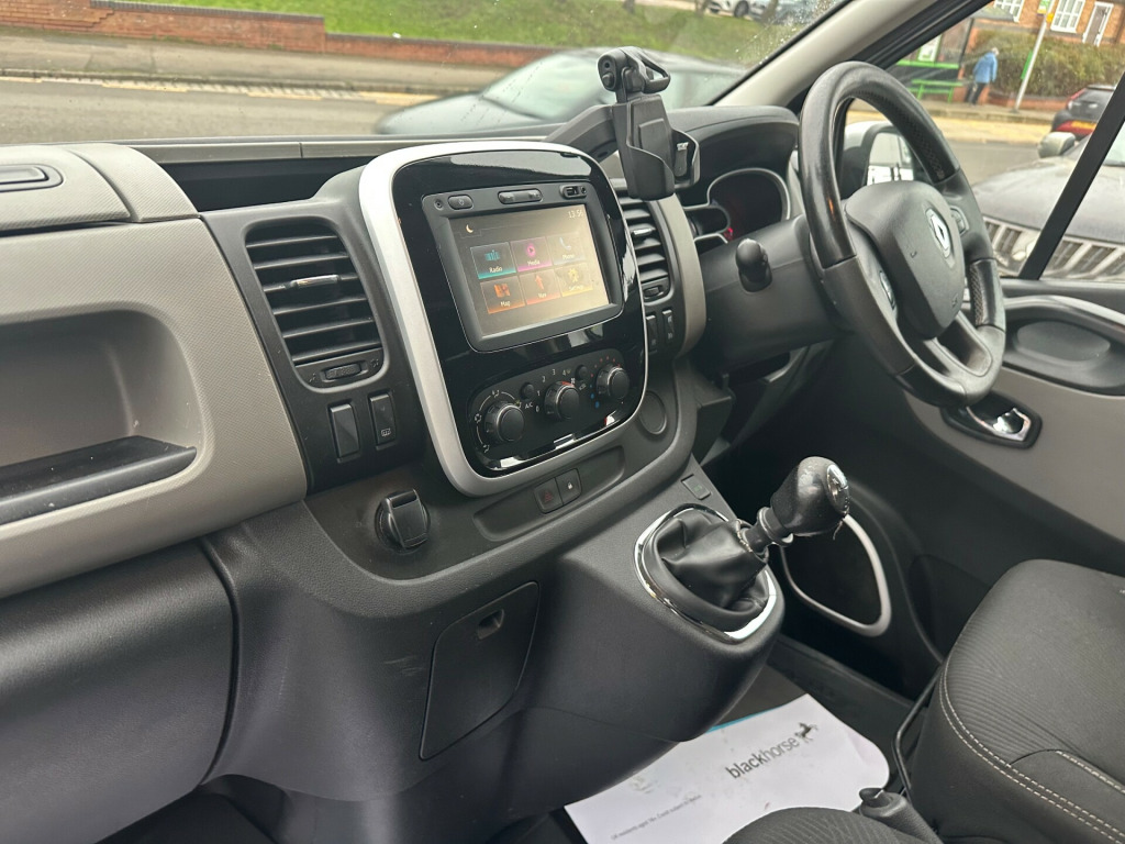 This 2018 Renault Trafic presents an exceptional opportunity with its remarkably low mileage of just 25,000 miles, a testament to its single owner and full service history, with the last service completed at 25,000 miles. This 1.6 dCi ENERGY 29 Sport Nav LWB Standard Roof Euro 6 (s/s) 5dr model is equipped with the Sport Nav trim, offering a 1.6 litre diesel engine and meeting Euro 6 emissions standards. For your peace of mind, it comes with a 3 month warranty and a 12 month MOT provided on purchase.The Trafic boasts a generous 6000 litre cargo volume, making it ideal for your business needs. Notable features include the MediaNav Multimedia System with Bluetooth connectivity, rear parking sensors for easier manoeuvring, and manual air conditioning with a pollen filter to ensure a comfortable cabin environment. The Wide View Mirror with Blind Spot Assistance further enhances safety. This vehicle also benefits from low CO2 emissions, indicating its efficiency compared to similar vans on the market. v power socket - front, medianav multimedia system, 17in alloy wheels - cyclade, body coloured door mirrors - brilliant black high gloss logo surround and premium chrome grille, door mirrors - heated with electric adjustment and external temperature sensor, electric front windows - drivers side - one touch - descending, roof bars fixings, spare wheel with anti-theft spare wheel holder, wide view mirror, abs with ebd - electronic brake force distribution, airbags - driver, alarm, deadlocking, esc - electronic stability control with hsa - hill start assist and grip xtend, electronic engine immobiliser, remote central locking, seatbelts - 3 point height-adjustable seatbelts with pretensioners and load limiters, anchorage points x18, bulkhead - full steel with load-through facility plus mobile office, closed glovebox, drivers seat with armrest - height adjustment and lumbar adjustment, left side loading door - unglazed, manual air conditioning with pollen filter, mobile office, passenger bench seat with underseat storage, premium dashboard with closable upper storage, reading lights - driver and front passenger, rear doors - 180 degree solid, smartphone cradle, steering wheel - leather with cruise control, steering wheel - rake and reach adjustable, automatic headlights and wipers with front fog lights, cruise control with speed limiter, gear change indicator, parking sensors - rear, power assisted steering, trip computer