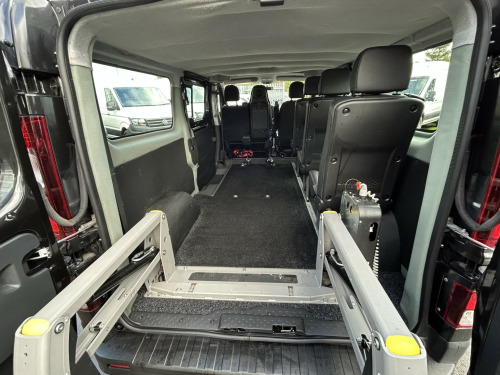 Renault Trafic 1.6 LL29dCi Business+ Wheelchair Access Crew No Vat finished in Black (Manual), 56400 miles, 1 Previous Owner, Service History, 1.6 DCI 120BHP, 6 Seater Wheelchair Disabled Accessible Lift, Side Loading Doors, Long wheelbase Low roof, PAS, Air Conditioning, Trip computer, Radio/CD, Full size spare wheel, Front electric windows, ABS, Drivers airbag, Remote central locking, Cloth seat trim, Privacy Glass, No Vat
