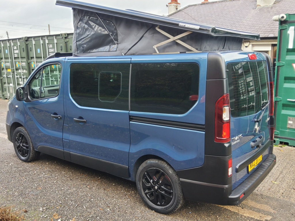 PLEASE ALSO SEE FACEBOOK AND GOOGLE FOR OUR REVIEWS. STUNNING EX MOTABILITY. TAILGATE. ONE OWNER TRAFIC BUSINESS WITH LOW MILEAGE AND SERVICE HISTORY AND FRESHLY MACHINE POLISHED WITH A HIGH QUALITY IGL CERAMIC COATING. NEW CONVERSION. RAPTOP POP TOP WITH SCENIC CANVAS. SARGENT POWER MANAGEMENT SYSTEM WITH SPLIT CHARGE SYSTEM AND 240 V HOOK UP. FULLY INSUALTED AND CARPETED. ELKA LUXURY RIGID VINYL FLOORING. U SHAPE FURNITURE SET UP. 35 LITRE FRIDGE FREEZER. DOMETIC TWIN HOB AND SINK. DIESEL HEATER. DAB. REAR PARKING SENSORS. VIDEO AVAILABLE ON REQUEST. VIEWINGS BY APPOINTMENT. NO VAT. 12 MONTHS MOT, SERVICE HISTORY. SIX MONTHS WARRANTY. 1 owner