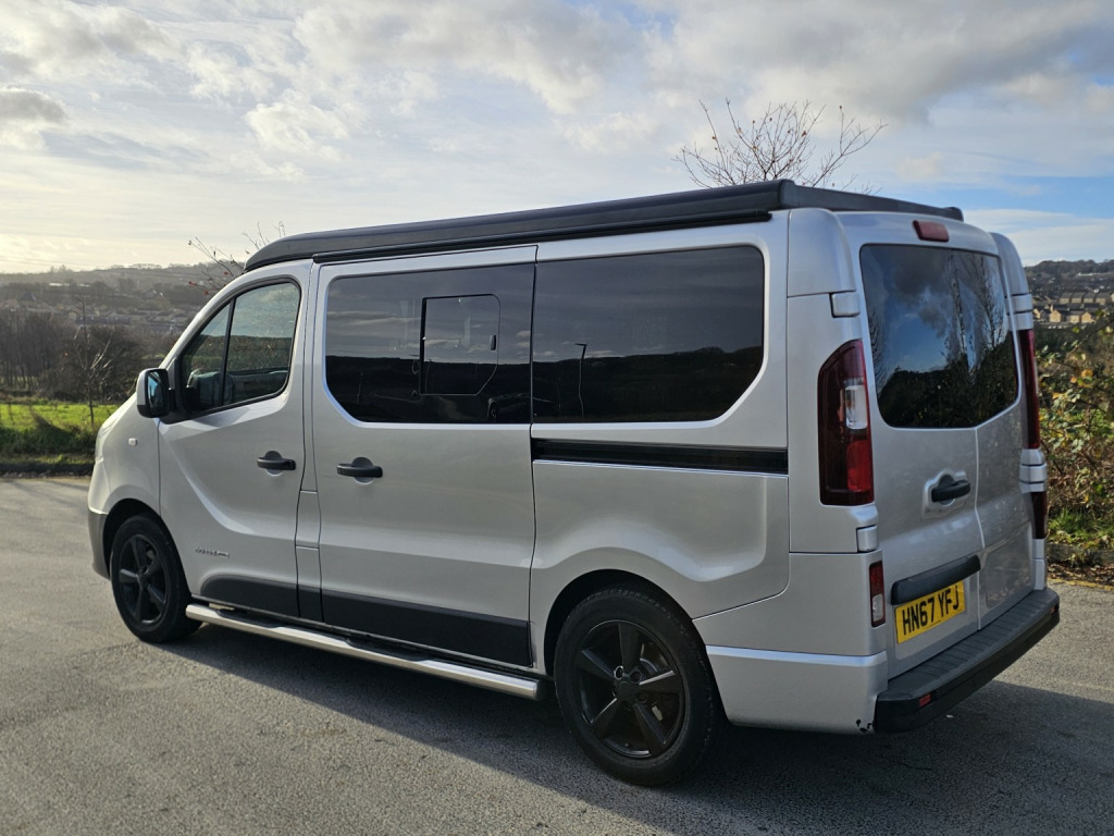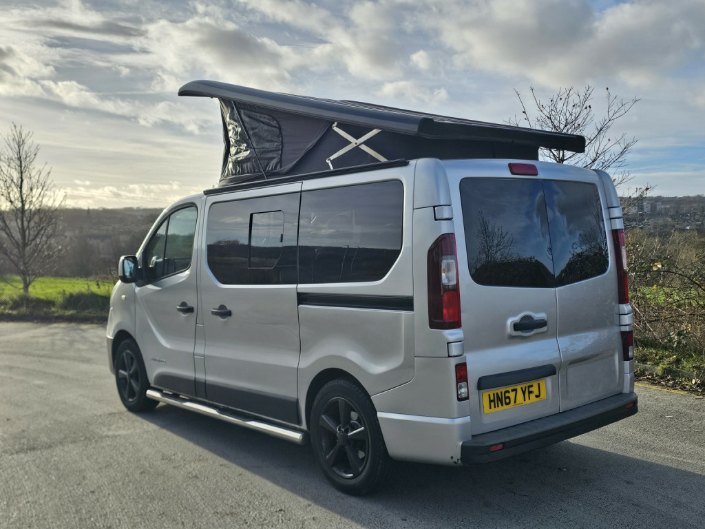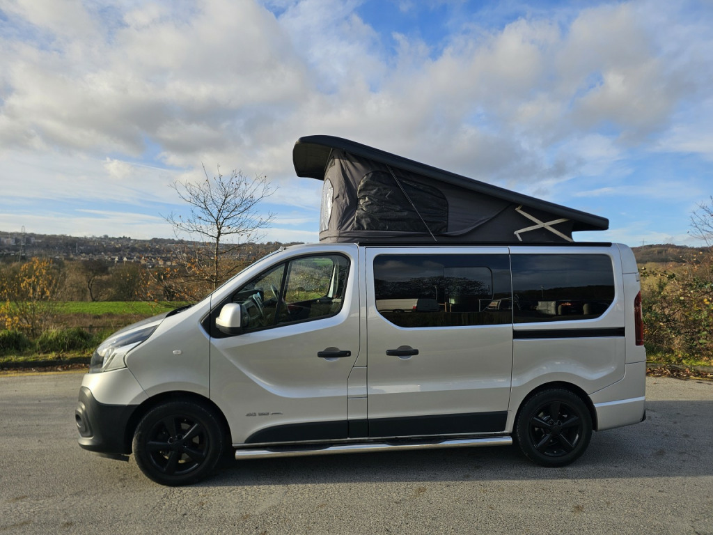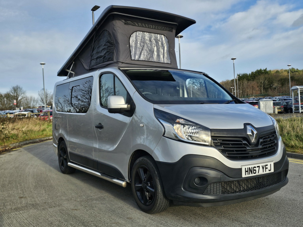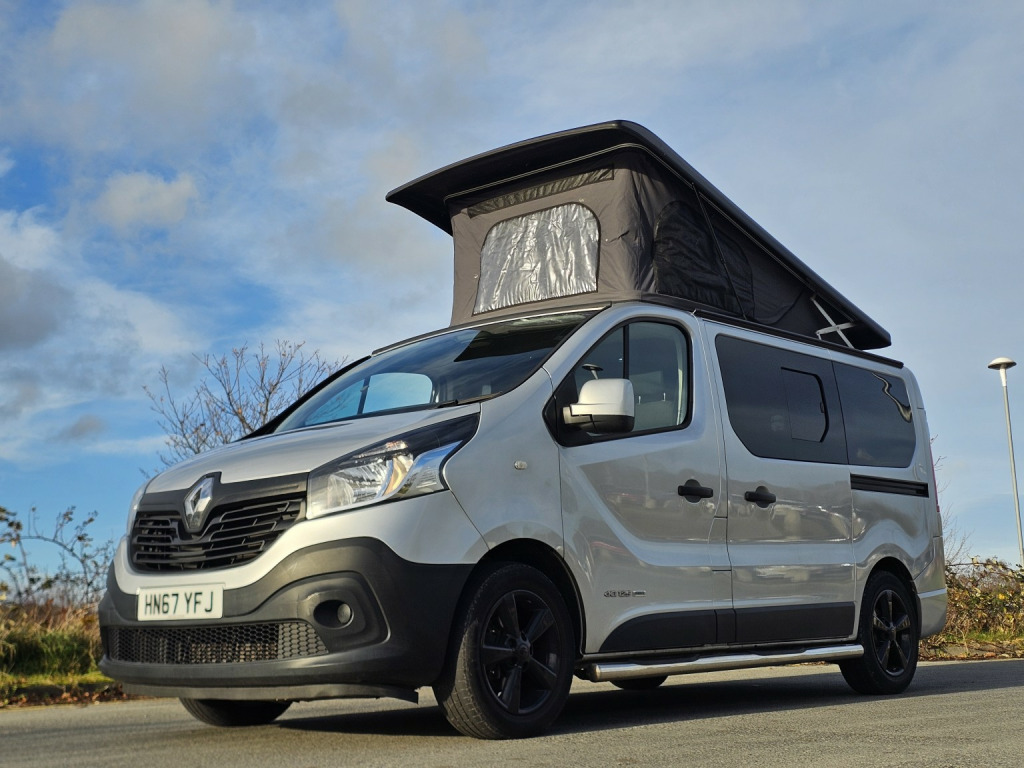 * Renault Trafic, * 1.6 TD , * Pop Top Campervan, * 6 speed manual, * 2017 67 plate, * 77,000 miles, * Swivel passenger seat, * Rock & roll bed, * Night heater, * 240v hookup, * Gas hobs / sink, * Fridge / freezer, * Electric windows & mirrors, * DAB radio, * LED interior lighting, * Side bars, * Alloy wheels, * Black out curtains,