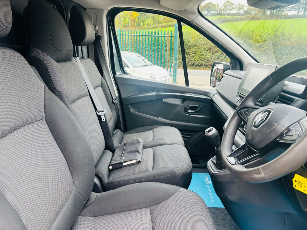Introducing the 2022 Renault Trafic 2.0 dCi Blue SL28 Business+ Panel Van, a reliable and efficient commercial vehicle with only 73176 miles on the clock. This diesel-powered panel van boasts a spacious 3-seat interior with 3 doors, making it perfect for transporting goods or equipment. Not only is it ULEZ compliant, but it also has a gross weight of 2800kg, providing ample capacity for your business needs. In a sleek Slate Grey exterior, this van comes equipped with EASY LINK Navigation with 8in Touchscreen, a 3.5in Monochrome TFT Driver Information Display, and multiple 12V Power Sockets for added convenience. Whether for logistics or delivery, this Renault Trafic is ready to handle the demands of your business with ease and style.- Supplied with 12 months MOT- 2 keys- Finance available- Part exchange welcome, v power socket - front, 12v power socket - load area, 3.5in monochrome tft driver information display, easy link display with 8in touchscreen, smartphone integration with apple carplay and android auto, 16in steel wheels - siras - large wheel stylers, black door mirrors, body coloured door rail, body coloured front bumper, body-coloured rear tail column, chrome grille, door mirrors - heated with electric adjustment and external temperature sensor, electric front windows - drivers side - one touch - descending, rear tail light column and door rail - body coloured, roof bars fixings, spare wheel with anti-theft spare wheel holder, wide view mirror, abs with ebd - electronic brake force distribution, airbags - driver, alarm, deadlocking, esc - electronic stability control with hsa - hill start assist and grip xtend, electronic engine immobiliser, remote central locking, seatbelt reminder - driver and passenger, seatbelts - 3 point height-adjustable seatbelts with pretensioners and load limiters, anchorage points x16, bulkhead - full steel with load-through facility, closed glovebox, dashboard with geometric grain, drivers seat with armrest - height adjustment and lumbar adjustment, interior lighting, key - 3 button with selective opening, left side loading door - unglazed, manual air conditioning with pollen filter, mobile office, passenger bench seat with underseat storage, rear doors - 180 degree solid, steering wheel - rake and reach adjustable, cruise control with speed limiter, eco mode button, gear change indicator, parking sensors - rear, power assisted steering, full led headlights with c-shape drl