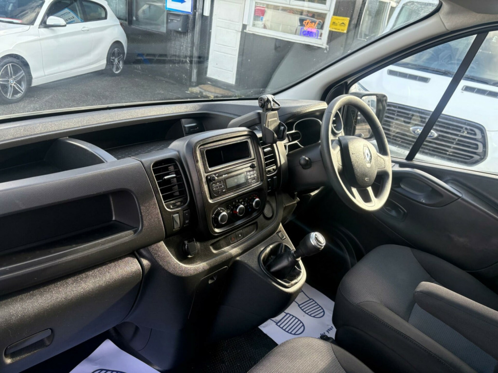 This 2021 Renault Trafic is a Business+ SWB Standard Roof model, offering a practical and efficient solution for your transport needs. Powered by a 2.0 litre dCi diesel engine, this Euro 6 compliant van is designed for reliability and economy. It comes equipped with rear parking sensors to assist with manoeuvring, a DAB radio with Bluetooth connectivity, a USB socket, and two 15W speakers for your entertainment. For comfort, it features manual air conditioning with a pollen filter, and the Wide View Mirror with Blind Spot Assistance enhances safety and awareness.The Trafic Business+ trim level is designed to make your working day smoother. The inclusion of parking assistance and blind spot assistance highlights how this vehicle is better equipped for everyday driving and parking compared to many similar vans. The integrated DAB radio and Bluetooth system ensures you can stay connected and entertained on the go, further enhancing its appeal as a capable and well appointed commercial vehicle. v power socket - front, 16in steel wheel with delos wheel trims, abs with ebd - electronic brake force distribution, airbags - driver, alarm, anchorage points x16, black door mirrors, body coloured door rail, body coloured front bumper, body-coloured rear tail column, bulkhead - full steel with load-through facility, bulkhead - full steel with load-through facility and mobile office, closed glovebox, dab radio with bluetooth - usb socket and 2x15w speakers, deadlocking, door mirrors - heated with electric adjustment and external temperature sensor, drivers seat with armrest - height adjustment and lumbar adjustment, esc - electronic stability control with hsa - hill start assist and grip xtend, electric front windows - drivers side - one touch - descending, electronic engine immobiliser, gear change indicator, key - 3 button with selective opening, left side loading door - unglazed, manual air conditioning with pollen filter, mobile office, parking sensors - rear, passenger bench seat with underseat storage, power assisted steering, rear doors - 180 degree solid, remote central locking, roof bars fixings, seatbelts - 3 point height-adjustable seatbelts with pretensioners and load limiters, smartphone cradle, spare wheel with anti-theft spare wheel holder, steering wheel - rake and reach adjustable, trip computer, wide view mirror