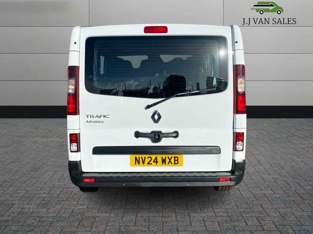 IMMACULATE RENAULT TRAFFIC ADVANCE MINIBUS, 20M RENAULT WARRANTY, 1 OWNER , This 2024 Renault Trafic presents an exceptional opportunity with its remarkably low mileage of just 10,304 miles, a significant advantage for its age, and it has had only one owner. This dCi LL30 Advance L2 H1 Euro 6 (s/s) 5dr model is powered by an efficient 2.0 litre diesel engine and boasts a Euro 6 emission class. Inside, youll find manual air conditioning with a pollen filter, an EASY LINK display featuring an 8 inch touchscreen and Bluetooth connectivity, and rear parking sensors for added convenience. The vehicle is also equipped with full LED headlights that include a distinctive C-shape daytime running light. The Renault Trafic stands out with its impressive fuel economy, achieving a highlight of 41 miles per gallon, and its low CO2 emissions. Furthermore, its low insurance group rating indicates that running costs are kept to a minimum, making it a more economical choice compared to similar vehicles. This combination of low mileage, single ownership, excellent fuel efficiency, and affordable running costs makes this Trafic a particularly appealing proposition. Lots more vans in stock, please check our website out www.jjvans.co.uk, Very competitive finance available please just ask for a quote , Viewings, part exchanges, nationwide delivery and extended warranty are available