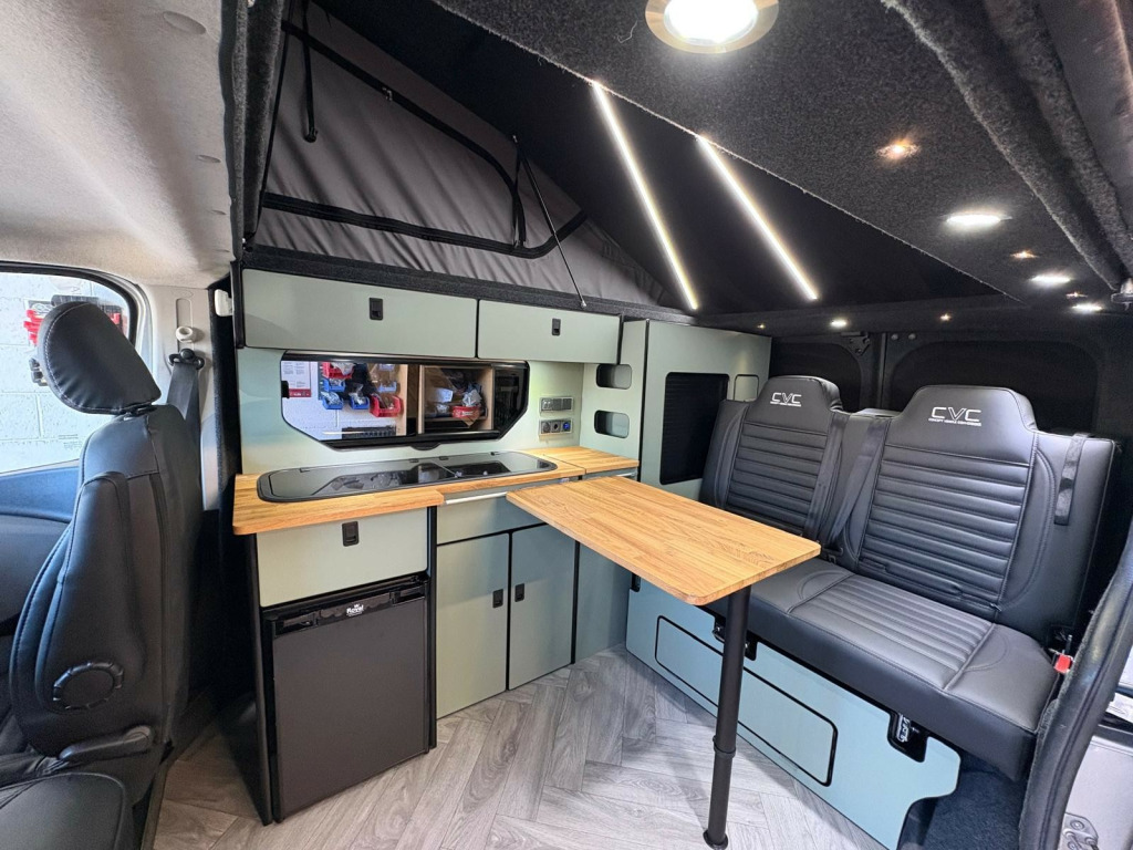 For Sale:2019 Renault Trafic sport SWB 4 berth campervan. This is a brand new professional conversion completed by us here at Concept Vehicle Conversions LtdVehicle:• 2019 Renault Trafic Sport• Short wheel base• 1.6 Diesel• 51,600 miles• Silver • 2 keys• Air conditioning • Parking sensors• DAB Radio•Sat Nav• Bluetooth connectivity• 6 speed manual transmission• Service history• HPI clear• Will come with 12 months MOT• 12 months vehicle warranty included Exterior:• CVC sports decals• Mains hook up• 4 privacy glass windows (o/s/f opening, 3 fixed)•Poptop roof in black with grey scenic canvas• 17'' alloy wheels in gloss black Interior:• Light weight laminated ply furniture finished in matt sage colour with solid oak worktop and table• Thetford Topline 111 sink and 2 gas burner hob• 50 litre 12v compressor fridge• 4 berth• Double swivel seat base• LED bed board in poptop finished in black suede• M1 tested reclining rock&roll bed• All seats upholstered in black vinyl with black stitching• Vanshade blinds rear window• oak herringbone effect vinyl flooring• Fully insulated and sound deadened• Fully carpet lined• Gas safety locker with full gas bottle included• Gas safety certificate• Victron split charger battery charging system• 100AH Leisure battery• Victron 240v mains intelligent battery charger• L.E.D lighting throughout• U.S.B/12v sockets• 2 Mains outlet sockets**Finance available please ask for a quote****12 month vehicle warranty included**We are located in Burnley, LancashireViewings welcome by appointment onlyAny questions please don't hesitate to ask