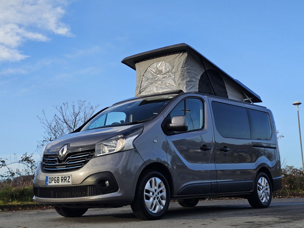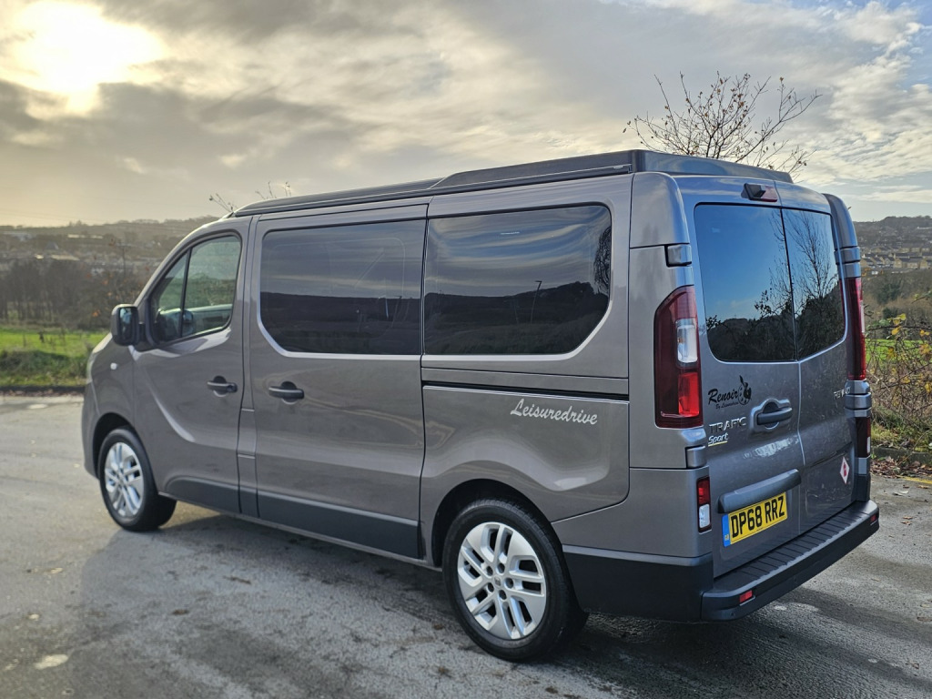 * Renault Trafic, * Sportive 1.6 DCi, * Leisure Drive Pop Top , * 6 Speed manual, * Campervan, * 2018 68 plate, * 4 Berth, * 5 Traveling seats, * Sat Nav, * Night heater, * Cruise control, * Swivel passenger seat, * Rock & roll bed, * Fridge / Freezer, * Gas Hobs / Sink, * 240v hook up, * Air conditioning, * Electric windows & mirrors, * Reversing sensors, * Detachable table, * Clean example