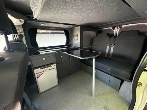 MILEAGE ONLY 120 2022 registered van with delivery miles (120) and just been converted by rising sun campers in Coventry 4 berth and 5 belted seats. The iconic conversion includes 2 fixed windows in privacy tint included curtains. 140 amp b2b charger, 110ah leisure battery. Hardwearing altro flooring, 4 led spot lights. Power management system includes 240v battery charger, external hook up. 12v power outlet, 240v socket, usb. Iconic furniture inc overbed lockers. Smev inc tap, gas locker removable water tank, insulation, 50 litre fridge and crash tested 3/4 rock n roll bed to match front seats. Austops elevating roof and bed.