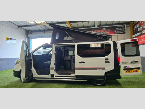 KINDLY WATCH FULL VIDEO, NO VAT WHEN ITS GONE ITS GONE HERE WE HAVE AN OTHER BRAND NEW CONVERSION & VERY STYLISH CAMPER VAN, PART EXCHANGE WELCOME, FINANCE AVAILABLE, RENAULT TRAFIC 2.0 dCi BLUE LL30 BUSINESS PANEL VAN 5DR DIESEL MANUAL, LWB, EURO 6 (S/S) (120 PS), CONVERTED TO A VERY HIGH STANDARD, POP TO ROOF WITH BED, 4 BIRTH, 5 SEATS, VULCAN M1 CRASH TESTED RECLINER ROCK AND ROLL BED, 50L FRIDGE/FREEZER, DOMETIC TWIN BURNER GAS HOB & SINK, MICROWAVE, TV & LED LIGHTS, VICTRON ORION SPLIT CHARGER, PLUG SOCKETS, USB CHARGING POINT, LEISURE BATTERY, EXTERNAL 240v HOOK UP, GAS BOTTLE WITH LOCKER & COMES WITH SAFETY CERTIFICATE, WATER BOTTLE, SIDE BARS, REMOVABLE DINING TABLE, PRIVACY GLASS ALL AROUND & CURTAINS TO FRONT SIDE WINDOWS AND REAR, FULLY INSULATED, SOUND DEADENED, SOLAR PANEL, INVERTER, HIGH QUALITY YILKAR NIGHT DIESEL HEATER, CBE ELECTRIC TOUCH SCREEN CONTROL PANEL KIT, READING LIGHT, THE REAR SEATS CONVERT INTO A ROCK AND ROLL BED (WITH UNDER-STORAGE) AND THE FRONT PASSENGER SEATS SWIVEL TO FACE INWARDS PROVIDING A COSY SOCIABLE SPACE, FULL SERVICE HISTORY, MAINTAINED VERY WELL, 6 MONTHS NATIONWIDE WARRANTY WITH AA, 12 MONTHS COMPLEMENTARY BREAK DOWN COVER WITH AA, 12 MONTHS WARRANTY OF ALL APPLIANCES, COMES WITH FRESH MOT, COVERED 40054 WARRANTED MILEAGE (MOSTLY DONE ON MOTORWAY), ONLY 1 PREVIOUS OWNER, 2 KEYS, DAB, RADIO, USB, PARKING SENSORS, PORTA POTTI, POP TOP MATTRESS, HOOK UP CABLE, MANY MORE FEATURES, TEST DRIVE HIGHLY RECOMMENDED, RESERVE NOW WITH A FULLY REFUNDABLE DEPOSIT, WE ARE AN FCA REGISTERED DEALER, APPROVED DEALER FOR CAR FINANCE 247 & PEGASUS FINANCE, MORE TECHNICAL DETAILS & FEATURES KINDLY VISIT OUR WEBSITE www.jajamotors.co.uk VIEWINGS BY APPOINTMENT ONLY, BUY WITH CONFIDENCE SEE OUR CUSTOMER REVIEWS, NATIONWIDE HOME DELIVERY AVAILABLE, WE ARE OPEN 7 DAYS A WEEK CALL OR TEXT *** 01274497687 *** *** 07426062038 *** ANY TIME***THIS CAMPER-VAN IS HPI ALL CLEAR