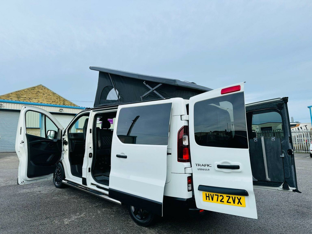 KINDLY WATCH FULL VIDEO, NO VAT WHEN ITS GONE ITS GONE HERE WE HAVE AN OTHER BRAND NEW CONVERSION & VERY STYLISH CAMPER VAN, PART EXCHANGE WELCOME, FINANCE AVAILABLE, RENAULT TRAFIC 2.0 dCi BLUE SL28 BUSINESS+, CAMPERVAN 5DR DIESEL MANUAL, EURO 6 (S/S) (130 PS), CONVERTED TO A VERY HIGH STANDARD, POP TO ROOF WITH BED, SCENIC POPTOP, 4 BIRTH, 5 SEATS, M1 CRASH TESTED RECLINER ROCK AND ROLL BED, 50L FRIDGE/FREEZER, DOMETIC TWIN BURNER GAS HOB & SINK, OVEN, TV & LED LIGHTS, SPLIT CHARGER, PLUG SOCKETS, USB CHARGING POINT, LEISURE BATTERY, EXTERNAL 240v HOOK UP, GAS BOTTLE WITH LOCKER & COMES WITH SAFETY CERTIFICATE, WATER BOTTLE, SIDE BARS, AWNING RAIL, REMOVABLE DINING TABLE, PRIVACY GLASS ALL AROUND & CURTAINS TO FRONT SIDE WINDOWS AND REAR, FULLY INSULATED, SOUND DEADENED, SOLAR PANEL, INVERTER, HIGH QUALITY NIGHT DIESEL HEATER, READING LIGHT, THE REAR SEATS CONVERT INTO A ROCK AND ROLL BED (WITH UNDER-STORAGE) AND THE FRONT PASSENGER SEATS SWIVEL TO FACE INWARDS PROVIDING A COSY SOCIABLE SPACE, FULL SERVICE HISTORY, MAINTAINED VERY WELL, 6 MONTHS NATIONWIDE WARRANTY WITH AA, 12 MONTHS COMPLEMENTARY BREAK DOWN COVER WITH AA, 12 MONTHS WARRANTY OF ALL APPLIANCES, NEXT MOT DUE DATE 01/01/2027, COVERED 45561 WARRANTED MILEAGE (MOSTLY DONE ON MOTORWAY), ONLY 1 PREVIOUS OWNER, 2 KEYS, DAB, RADIO, USB, PORTA POTTI, POP TOP MATTRESS, HOOK UP CABLE, MANY MORE FEATURES, TEST DRIVE HIGHLY RECOMMENDED, RESERVE NOW WITH A FULLY REFUNDABLE DEPOSIT, WE ARE AN FCA REGISTERED DEALER, APPROVED DEALER FOR CAR FINANCE 247 & PEGASUS FINANCE, MORE TECHNICAL DETAILS & FEATURES KINDLY VISIT OUR WEBSITE www.jajamotors.co.uk VIEWINGS BY APPOINTMENT ONLY, BUY WITH CONFIDENCE SEE OUR CUSTOMER REVIEWS, NATIONWIDE HOME DELIVERY AVAILABLE, WE ARE OPEN 7 DAYS A WEEK CALL OR TEXT *** 01274497687 *** *** 07426062038 *** ANY TIME***THIS CAMPER-VAN IS HPI ALL CLEAR.