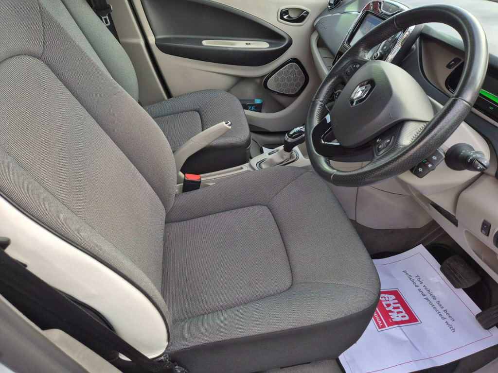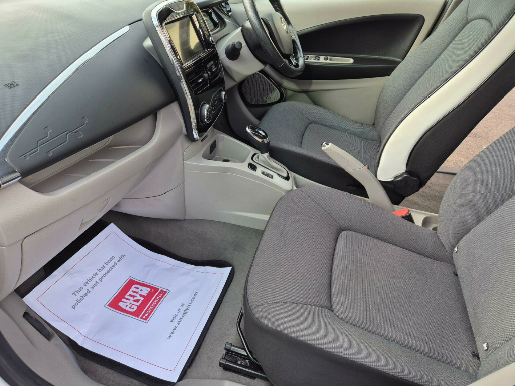 BATTERY OWNED, £20 TAX, 3 PIN PLUG CHARGING CABLE PLUS FASTER CHARGER, SAVE 80% ON FUEL BILLS, NO ENGINE TO SERVICE, DRIVES BETTER WITH INSTANT POWER,  GREAT SPEC WITH REVERSING CAMERA, CRUISE CONTROL, AIR CON AND MUCH MORE, WILL COME WITH A FRESH MOT, 6-MONTH WARRANTY, JUST BEEN SERVICED, LOOKS & DRIVES GREAT, COMES WITH 2 KEYS. HPI CLEAR. AIDANS AUTOMOBILES IS  BASED IN WOMBWELL, BARNSLEY, S73 8DQ. THE VAST MAJORITY OF CARS COME WITH A 6 MONTH WARRANTY, ARE HPI CLEAR, HAVE SERVICE HISTORY AND A LONG MOT (MOST HAVE A FRESH 12 MONTH). PX AVAILABLE. ANY QUESTIONS OR TO BOOK AN APPOINTMENT PLEASE CALL ON 01226 754006. WE DO VIEWING BY APPOINTMENT TO AVOID YOU HAVING A WASTED JOURNEY. WWW.AIDANSAUTOMOBILES.CO.UK. 12V Power Socket, 16in Alloy Wheels - Aerotronic, 2x Front Cupholders, ABS - Anti Lock Brakes, ASR - Traction Control, AUX Input, Airbags - Driver, Airbags - Front Curtain, Airbags - Front Passenger, Airbags - Front Passenger Deactivation, Airbags - Side, Arkamys 3D Sound 4 x 35W DAB Radio, Ash Tray, Automatic Emergency Lights Under Heavy Braking, Automatic Headlights, Automatic Windscreen Wipers with Rain Sensors, Battery Gauge, Bluetooth Hands Free System, Bumpers - Body Coloured, CSV - Understeer Control, Carminat TomTom Satellite Navigation, Chameleon Charger, Charge Cable - Type 2 - Mode 3 with Z.E. Bag, Cleanable Luxury Mats, Cleaning kit, Climate Control with Temperature and Humidity Sensors, Combined Filter, Connectivity - All R-link applications including email - R-Link Tweet - Renault Assistance and Weather +TomTom LIVE Services (1 Year Subscription From New), Cruise Control with Speed Limiter, Daytime Running Lights - LED, Deadlocking, Door Handles - Body Coloured - Front, Door Mirrors - Black Gloss Housing with ZOE Designer Signature, Door Mirrors - Electrically Adjustable - Manual Folding and Heated, Double Antenna, EBA - Emergency Brake Assist, EBD - Electronic Brake Distribution, ESC - Electronic Stability Control, Eco Mode Button, Econometer, Electric Windows - Front and Rear with Driver One-Touch - Anti-Pinch Functionality, Electronic Engine Immobiliser, Estimated Range, Front Charger Socket - Charging Flap Under The Renault Logo, Front Door Bottle Storage - 1.5 ltr, Front Grille - Black with Z.E. Blue Surround, Gear Knob - Leather, Glovebox - 7 litres, HSA - Hill Start Assist, Headlights - Bi-Halogen Optical Projector, Headrests - Integrated Front, Headrests - Outer Rear Height Adjustable, ISOFIX - Child Seat Fixing Points - Outer Rear Seats, Intergrated Millage Counter, Interior - Dynamique, Invisible Rear Door Handles, Keycard - Handsfree - Automatic Opening Upon Approach, Parking Sensors - Rear, Power Assisted Steering, R-Link 7in Touchscreen Embedded Tablet with Voice Control, RAID - Renault Anti Intruder Device, Rear Parking Camera with Rear Parking Sensors, Remote Monitoring of Battery, Remote Pre-Conditioning and Charge Scheduling, SD Multimedia, Seatbelt Warning Sound, Side Indicators on Door Mirror, Speakers - 2x Front - 2x Rear - Bicones, Speakers - x2 Front Tweeters, Steering Column - Reach and Rake Adjustable, Steering Wheel - Leather, Storage - Front Centre Console, Storage - Front Seat Back Pockets - Passenger, Sun Visor - Driver and Passenger - Vanity Mirror, TFT Display Screen, Trip Computer and Style Indicator, Tyre Pressure Monitoring System, Tyre Repair Kit, USB Connection, Voice Control, Windows - Privacy Glass on Rear, Z.E. - Voice - Low Speed Pedestrian Warning, Z.E. Blue Tinted Front and Rear Windows, Z.E. Chrome Blue Headlight Surrounds, Z.E. Interactive (1 Year Subscription From New), Z.E. Pre-Conditioning of Interior Temperature from Inside Vehicle - Activate Air Con - Heater Whilst Charging, Z.E. Signature - Chrome Blue Renault Logo and Z.E. Rear Badge.