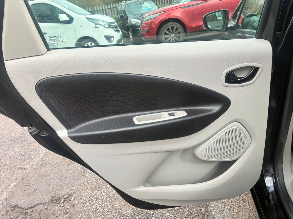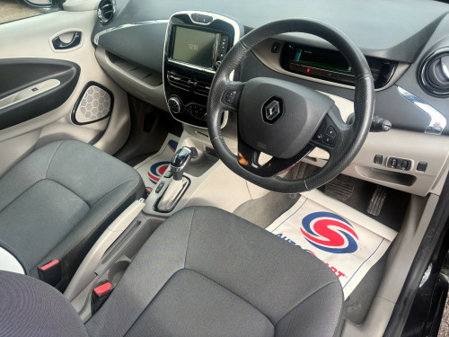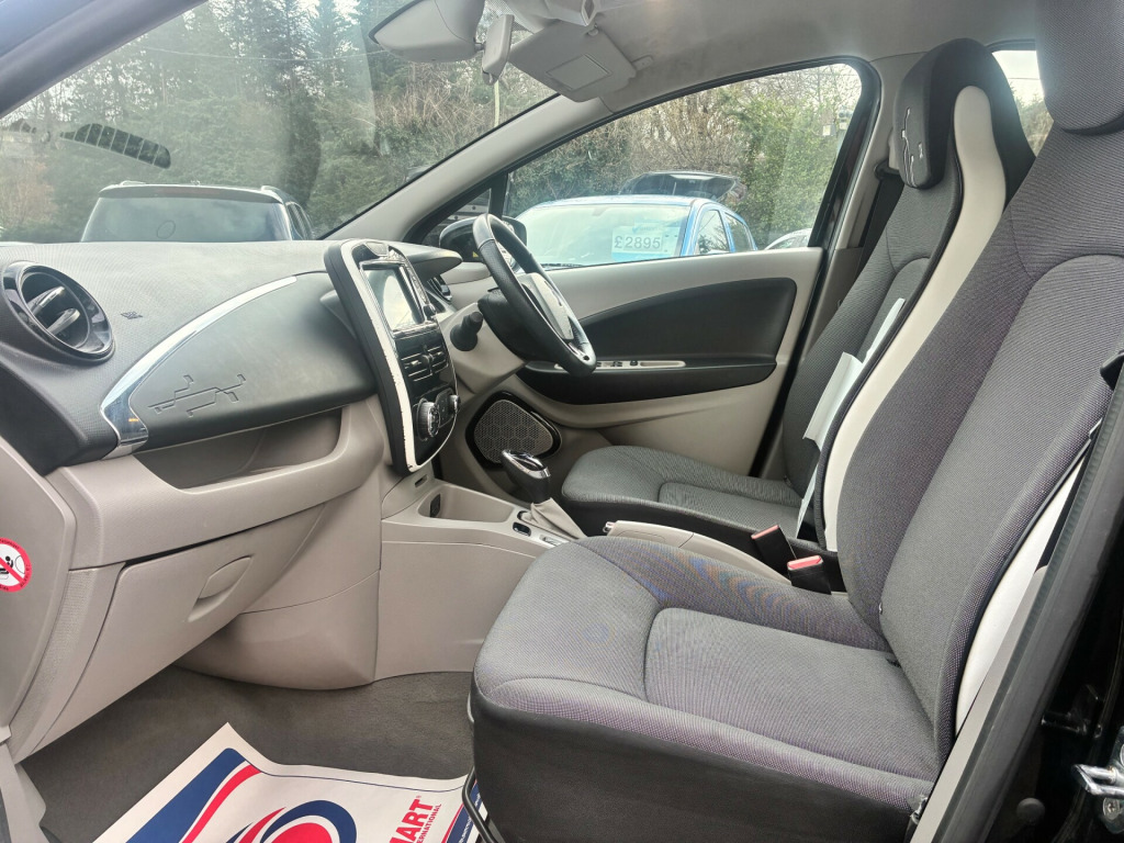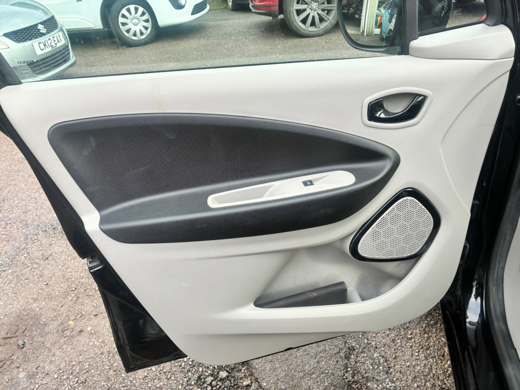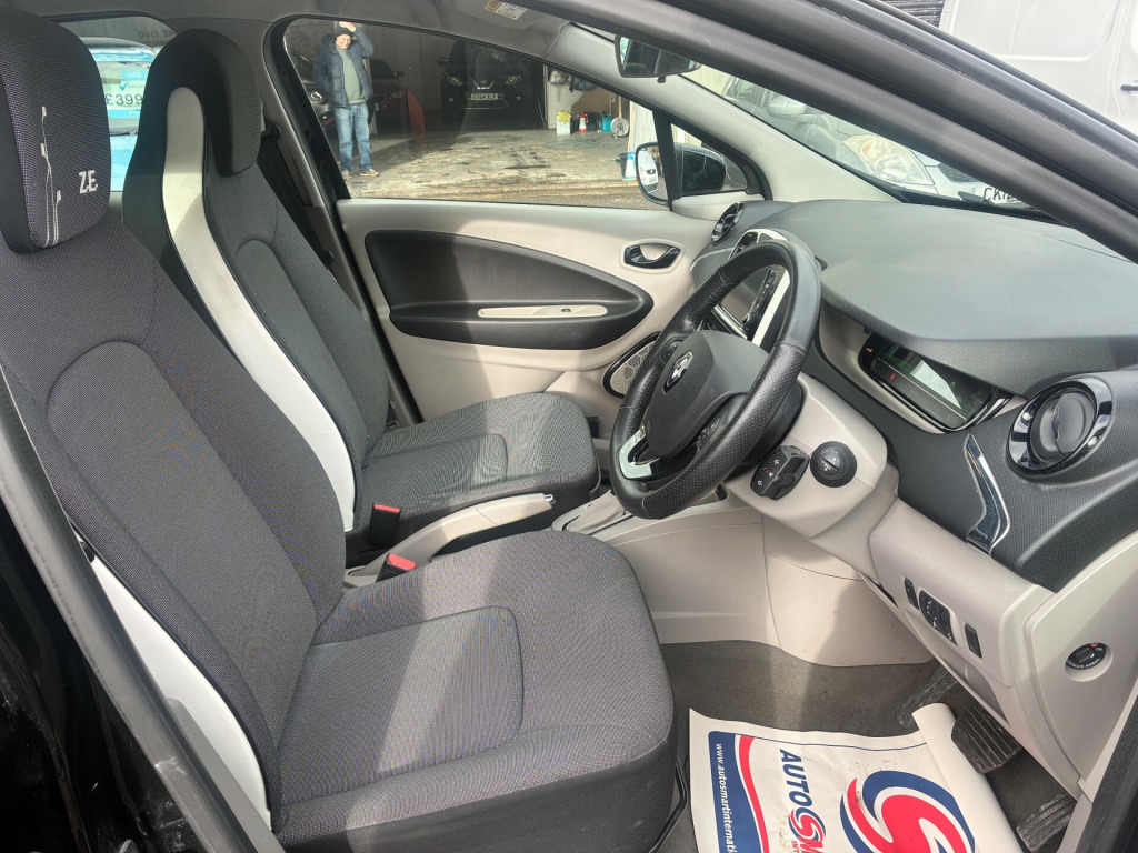 v power socket, aux input, arkamys 3d sound 4 x 35w dab radio, bluetooth hands free system, carminat tomtom satellite navigation, connectivity - all r-link applications including email - r-link tweet - renault assistance and weather +tomtom live services (1 year subscription from new), double antenna, r-link 7in touchscreen embedded tablet with voice control, sd multimedia, speakers - 2x front - 2x rear - bicones, speakers - x2 front tweeters, tft display screen, usb connection, z.e. interactive (1 year subscription from new), 16in alloy wheels - aerotronic, bumpers - body coloured, cleaning kit, door handles - body coloured - front, door mirrors - black gloss housing with zoe designer signature, door mirrors - electrically adjustable - manual folding and heated, electric windows - front and rear with driver one-touch - anti-pinch functionality, front charger socket - charging flap under the renault logo, front grille - black with z.e. blue surround, invisible rear door handles, side indicators on door mirror, tyre repair kit, windows - privacy glass on rear, z.e. blue tinted front and rear windows, z.e. chrome blue headlight surrounds, z.e. signature - chrome blue renault logo and z.e. rear badge, 2x front cupholders, ash tray, automatic windscreen wipers with rain sensors, battery gauge, cleanable luxury mats, climate control with temperature and humidity sensors, combined filter, front door bottle storage - 1.5 ltr, gear knob - leather, glovebox - 7 litres, headrests - integrated front, headrests - outer rear height adjustable, interior - dynamique, remote monitoring of battery, remote pre-conditioning and charge scheduling, steering column - reach and rake adjustable, steering wheel - leather, storage - front centre console, storage - front seat back pockets - passenger, sun visor - driver and passenger - vanity mirror, z.e. pre-conditioning of interior temperature from inside vehicle - activate air con - heater whilst charging, abs - anti lock brakes, asr - traction control, airbags - driver, airbags - front curtain, airbags - front passenger, airbags - front passenger deactivation, airbags - side, automatic emergency lights under heavy braking, csv - understeer control, deadlocking, eba - emergency brake assist, ebd - electronic brake distribution, esc - electronic stability control, electronic engine immobiliser, hsa - hill start assist, isofix - child seat fixing points - outer rear seats, keycard - handsfree - automatic opening upon approach, raid - renault anti intruder device, seatbelt warning sound, z.e. - voice - low speed pedestrian warning, automatic headlights, daytime running lights - led, headlights - bi-halogen optical projector, chameleon charger, charge cable - type 2 - mode 3 with z.e. bag, cruise control with speed limiter, eco mode button, econometer, estimated range, intergrated millage counter, parking sensors - rear, power assisted steering, rear parking camera with rear parking sensors, trip computer and style indicator, tyre pressure monitoring system, voice control