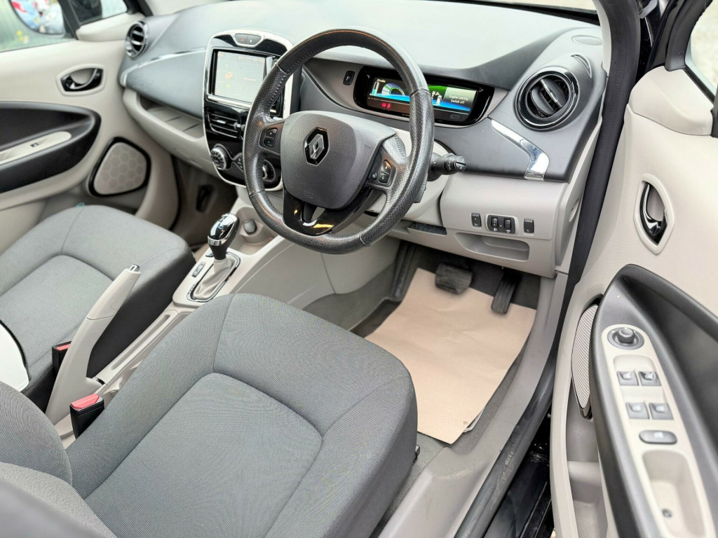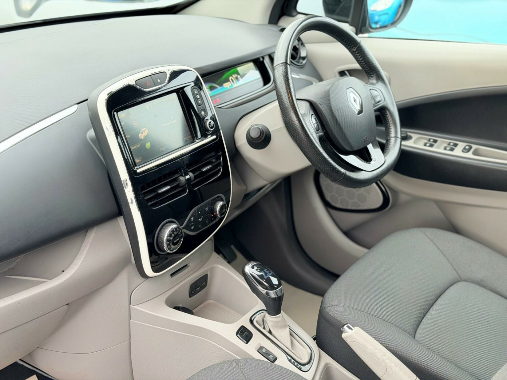 Battery Owned, Hpi Clear, Drives Well, Sat-Nav, Reverse Camera, 2xKeys, Long MOT v power socket, 16in alloy wheels - aerotronic, 2x front cupholders, abs - anti lock brakes, asr - traction control, aux input, airbags - driver, airbags - front curtain, airbags - front passenger, airbags - front passenger deactivation, airbags - side, arkamys 3d sound 4 x 35w dab radio, ash tray, automatic emergency lights under heavy braking, automatic headlights, automatic windscreen wipers with rain sensors, battery gauge, bluetooth hands free system, bumpers - body coloured, csv - understeer control, carminat tomtom satellite navigation, chameleon charger, charge cable - type 2 - mode 3 with z.e. bag, cleanable luxury mats, cleaning kit, climate control with temperature and humidity sensors, combined filter, connectivity - all r-link applications including email - r-link tweet - renault assistance and weather +tomtom live services (1 year subscription from new), cruise control with speed limiter, daytime running lights - led, deadlocking, door handles - body coloured - front, door mirrors - black gloss housing with zoe designer signature, door mirrors - electrically adjustable - manual folding and heated, double antenna, eba - emergency brake assist, ebd - electronic brake distribution, esc - electronic stability control, eco mode button, econometer, electric windows - front and rear with driver one-touch - anti-pinch functionality, electronic engine immobiliser, estimated range, front charger socket - charging flap under the renault logo, front door bottle storage - 1.5 ltr, front grille - black with z.e. blue surround, gear knob - leather, glovebox - 7 litres, hsa - hill start assist, headlights - bi-halogen optical projector, headrests - integrated front, headrests - outer rear height adjustable, isofix - child seat fixing points - outer rear seats, intergrated millage counter, interior - dynamique, invisible rear door handles, keycard - handsfree - automatic opening upon approach, parking sensors - rear, power assisted steering, r-link 7in touchscreen embedded tablet with voice control, raid - renault anti intruder device, rear parking camera with rear parking sensors, remote monitoring of battery, remote pre-conditioning and charge scheduling, sd multimedia, seatbelt warning sound, side indicators on door mirror, speakers - 2x front - 2x rear - bicones, speakers - x2 front tweeters, steering column - reach and rake adjustable, steering wheel - leather, storage - front centre console, storage - front seat back pockets - passenger, sun visor - driver and passenger - vanity mirror, tft display screen, trip computer and style indicator, tyre pressure monitoring system, tyre repair kit, usb connection, voice control, windows - privacy glass on rear, z.e. - voice - low speed pedestrian warning, z.e. blue tinted front and rear windows, z.e. chrome blue headlight surrounds, z.e. interactive (1 year subscription from new), z.e. pre-conditioning of interior temperature from inside vehicle - activate air con - heater whilst charging, z.e. signature - chrome blue renault logo and z.e. rear badge