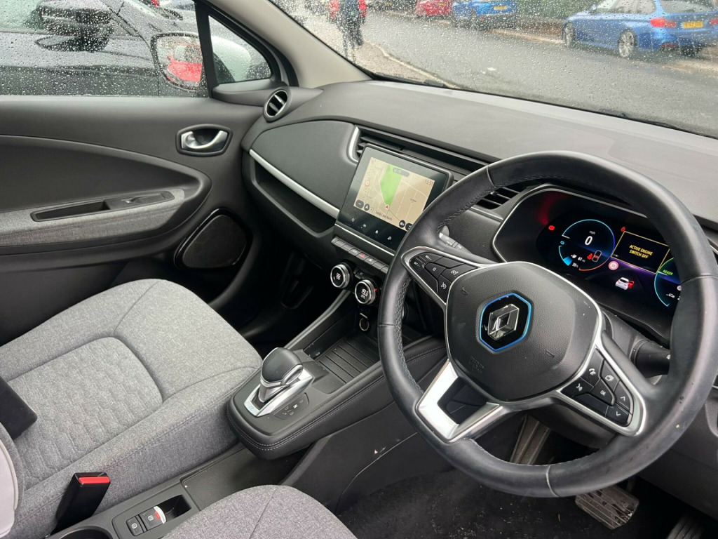 This 2020 Renault Zoe R110 Iconic presents an exceptional opportunity with remarkably low mileage for its age, having covered just 29,000 miles. As an electric vehicle, it boasts a substantial 55 kWh battery offering a maximum range of 239 miles when new, ensuring you can travel further on a single charge. This Zoe is equipped with a striking White Body Stripe and benefits from Renault's Keycard with Handsfree Entry for effortless access. Driving is enhanced by Full LED Headlights with C Shape DRLs, Automatic Headlights, and Climate Control Air Conditioning, all designed for your comfort and convenience.The Iconic trim level signifies a superior offering, and this Zoe excels with its impressive battery range of 239 miles from new, setting it apart from many other electric vehicles. Charging is convenient, with a full charge at home taking approximately 9 hours and 25 minutes using a 7kW charger, while rapid public charging can take you from empty to 80% in just 1 hour and 10 minutes. Furthermore, you'll appreciate the generous boot space, making it a practical choice for everyday use and longer journeys. onic-100% recycled cloth - black, 12v plug in lower dashboard, 16in alloy wheels - michelin ev energy tyres, 2 driver airbags, 2 passenger airbags - disconnectable, 2x front cupholders, 50kw dc rapid charging, abs - anti lock brakes, asr - traction control, automatic hazard warning lights, automatic headlights, automatic windscreen wipers with rain sensors, battery charge indicator, csv - understeer control, chameleon charger, charging cable - type 2, child locking - rear doors, chrome grille, climate control - air conditioning, cruise control switches on steering wheel, cruise control with speed limiter, daytime running lights - led, deadlocking, door handles - body coloured - front, door mirrors - body coloured, door mirrors - electrically adjustable - manual folding and heated, driver one touch and 3 passenger electric windows, drivers seat with longitudinal adjustment and recline, driving style indicator, e-shifter with b-mode, easy link 7in core display with nav, esc - electronic stability control, eco mode button, econometer, electric power steering, electronic engine immobiliser, fixed 3 point seat belt on central rear seat, fixed 3 point seat belts with load limiters on outer rear seats, front door bottle storage - 1.5 ltr, front fog lights, front z.e. charging socket, full 10in tft with ze identity, full led headlights with c-shape drl, gear change indicator, glovebox, hsa - hill start assist, headlights - automatic high-low beam, headrests - rear x3, heated rear windscreen, height adjustable 3-point front seatbelts with pretensioners, isofix - child seat fixing points - outer rear seats and front passenger, inductive smart phone charging, ldw - lane departure warning, lka - lane keep assist, over speed prevention, pet soft touch steering wheel, parking brake - automatic, parking sensors - rear, raid - renault anti intruder device - automatic door locking, range indicator, range optimizer, renault keycard with handsfree entry, seatbelt reminder warning, seats - split folding rear, smart phone integration, speakers x6, steering wheel - height and depth adjustable, storage pockets in rear of front passengers seat, sun visors with mirror and light, tsr - traffic sign recognition, two rear usb plugs, tyre inflation kit, tyre pressure monitoring system, tyre repair kit, white body stripe, z.e. connected services (3 year subscription from new), z.e. voice