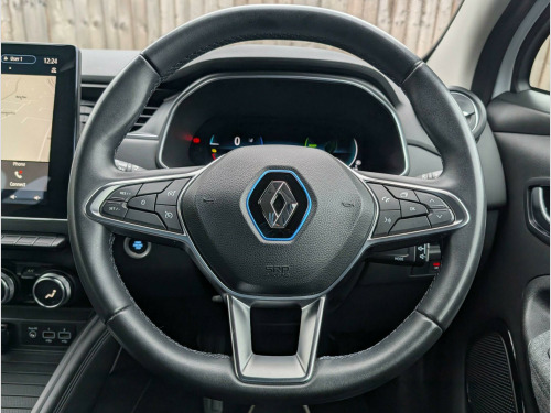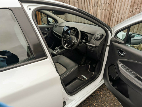 This 2020 Renault Zoe R135 GT Line boasts a full dealership service history and has had only one owner from new. This Zoe comes equipped with a Technology Pack, including front and rear parking sensors and a rear camera, alongside Blind Spot Warning for added safety. You'll also appreciate the convenience of keyless entry with the Renault Keycard and the bright illumination provided by full LED headlights with distinctive C-shape daytime running lights. The Zoe also has Apple Car Play and Android Auto, making phone connectivity a simple affair.The GT Line trim level enhances the driving experience with features like climate control air conditioning. The large boot space offers ample room for shopping or luggage, a significant advantage for everyday practicality. With its MOT valid until August 2026 and a clear vehicle history check, this Renault Zoe represents a well maintained and capable electric car. The 55 kWh battery capacity contributes to its substantial range, setting it apart from many other electric vehicles on the market.To book an appointment, please contact us by phone, email or by the chat service.Finance is available. nthetic leather-recycled cloth - black, 12v plug in lower dashboard, 16in alloy wheels - diamond cut with michelin ev energy tyres, 2 driver airbags, 2 passenger airbags - disconnectable, 2x front cupholders, abs - anti lock brakes, aebs - advanced emergency braking system, asr - traction control, auto dimming rear view mirror, automatic hazard warning lights, automatic headlights, automatic windscreen wipers with rain sensors, battery charge indicator, blind spot warning, csv - understeer control, chameleon charger, charging cable - type 2, child locking - rear doors, chrome grille, climate control - air conditioning, cruise control switches on steering wheel, cruise control with speed limiter, daytime running lights - led, deadlocking, door handles - body coloured - front, door mirrors - body coloured, door mirrors - electrically operated - heated - folding, driver one touch and 3 passenger electric windows, drivers seat with longitudinal adjustment and recline, driving style indicator, e-shifter with b-mode, easy link 9.3in display with nav, esc - electronic stability control, eco mode button, econometer, electric power steering, electronic engine immobiliser, fixed 3 point seat belt on central rear seat, fixed 3 point seat belts with load limiters on outer rear seats, front door bottle storage - 1.5 ltr, front fog lights, front z.e. charging socket, full 10in tft with ze identity, full led headlights with c-shape drl, gear change indicator, glovebox, hsa - hill start assist, headlights - automatic high-low beam, headrests - rear x3, heated rear windscreen, height adjustable 3-point front seatbelts with pretensioners, isofix - child seat fixing points - outer rear seats and front passenger, inductive smart phone charging, ldw - lane departure warning, lka - lane keep assist, over speed prevention, pet soft touch steering wheel, parking brake - automatic, raid - renault anti intruder device - automatic door locking, range indicator, range optimizer, renault keycard with handsfree entry, seatbelt reminder warning, seats - split folding rear, smart phone integration, speakers x6, steering wheel - height and depth adjustable, storage pockets in rear of front passengers seat, sun visors with mirror and light, tsr - traffic sign recognition, technology pack, tinted rear windows, two rear usb plugs, tyre inflation kit, tyre pressure monitoring system, tyre repair kit, z.e. connected services (3 year subscription from new), z.e. voice