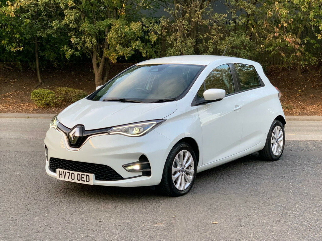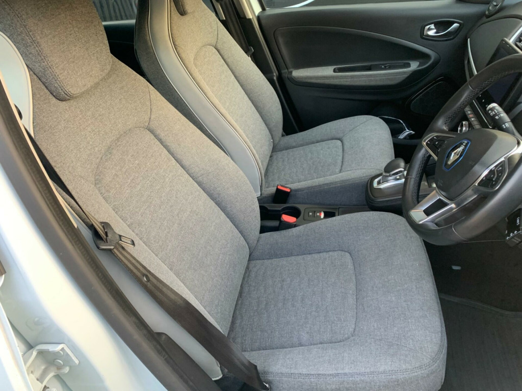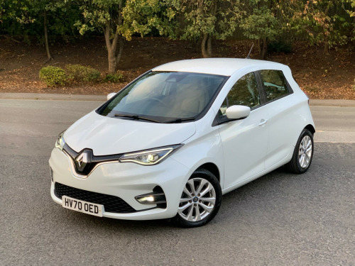IN PEARLESCENT WHITE WITH GREY CLOTH INTERIOR, BLUETOOTH & MEDIA CONNECTIVITY, KEYLESS ENTRY & GO WITH 2 KEYS, PARK ASSIST, MULTIFUNCTION STEERING WHEEL, 2 CHARGING CABLES, ONLY 28,000 MILES - LOW RATE FINANCE AVAILABLE AT 8.9% APR - FINANCE EXAMPLES AVAILABLE ON REQUEST v plug in lower dashboard, 16in alloy wheels - michelin ev energy tyres, 2 driver airbags, 2 passenger airbags - disconnectable, 2x front cupholders, 50kw dc rapid charging, abs - anti lock brakes, asr - traction control, automatic hazard warning lights, automatic headlights, automatic windscreen wipers with rain sensors, battery charge indicator, csv - understeer control, chameleon charger, charging cable - type 2, child locking - rear doors, chrome grille, climate control - air conditioning, cruise control switches on steering wheel, cruise control with speed limiter, daytime running lights - led, deadlocking, door handles - body coloured - front, door mirrors - body coloured, door mirrors - electrically adjustable - manual folding and heated, driver one touch and 3 passenger electric windows, drivers seat with longitudinal adjustment and recline, driving style indicator, e-shifter with b-mode, easy link 7in core display with nav, esc - electronic stability control, eco mode button, econometer, electric power steering, electronic engine immobiliser, fixed 3 point seat belt on central rear seat, fixed 3 point seat belts with load limiters on outer rear seats, front door bottle storage - 1.5 ltr, front fog lights, front z.e. charging socket, full 10in tft with ze identity, full led headlights with c-shape drl, gear change indicator, glovebox, hsa - hill start assist, headlights - automatic high-low beam, headrests - rear x3, heated rear windscreen, height adjustable 3-point front seatbelts with pretensioners, isofix - child seat fixing points - outer rear seats and front passenger, inductive smart phone charging, ldw - lane departure warning, lka - lane keep assist, over speed prevention, pet soft touch steering wheel, parking brake - automatic, parking sensors - rear, raid - renault anti intruder device - automatic door locking, range indicator, range optimizer, renault keycard with handsfree entry, seatbelt reminder warning, seats - split folding rear, smart phone integration, speakers x6, steering wheel - height and depth adjustable, storage pockets in rear of front passengers seat, sun visors with mirror and light, tsr - traffic sign recognition, two rear usb plugs, tyre inflation kit, tyre pressure monitoring system, tyre repair kit, z.e. connected services (3 year subscription from new), z.e. voice, iconic-100% recycled cloth - black, quartz white