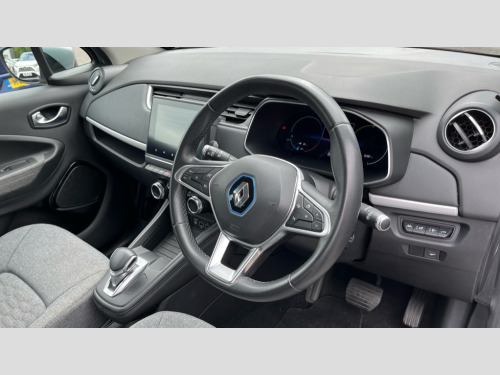 Renault Zoe 100kW i Iconic R135 50kWh 5dr Auto 10" TFT Driver information display, Charging cable (Type 2), Cruise control + speed limiter, Cruise control switches on steering wheel, Driving style indicator, Eco mode, Econometer, Electric power steering, Lane departure warning system (LDW), Lane keeping assistant (LKA), Range indicator, Range optimizer, Slow speed pedestrian warning, Smartphone integration compatible with Apple CarPlay and Android Auto, Traffic sign recognition (TSR), Battery charge indicator, Chameleon charger AC 2-22kW, 2 USB sockets in rear, 6 speakers, Steering wheel mounted controls, Automatic hazard lights activation under emergency braking, Automatic headlights + automatic windscreen wipers, Automatic high/low beam, Automatic rain sensing wipers, Body colour bumpers, Body colour door mirrors, Body colour front door handles, Driver one touch and passenger electric windows, Electric rear windows, Electrically operated heated and folding mirrors, Front fog lights, Full LED headlamps with C-shape LED daytime running lights, Heated rear windscreen, 12V socket in lower dashboard, 3 rear head restraints, Automatic air conditioning, Driver/passenger sunvisors and vanity mirrors, Drivers seat with longitudinal adjustment and recline, Fabric upholstery (recycled), Front charging socket, Front door storage bins with bottle holder, Front head restraints, Gear shift indicator, Glovebox, Height/reach adjust steering wheel, ISOFIX on front passenger and rear outer seats, PET soft touch steering wheel, Soft armrests in door panels, Split folding rear seats, Stowage pocket in front passenger seat back, Twin front cupholders, 3 point seatbelts on all rear seats, Anti-lock braking system (ABS), Automatic parking brake, Child locks on rear doors, Driver/Front Passenger airbags, ESP + ASR traction control + CSV understeer control, Front passenger airbag deactivation, Height adjustable front seatbelts, Hill start assist, Rear disc brakes, Seatbelt pretensioners with load limiters, Seatbelt warning, Tyre pressure monitor, Deadlocking system, Electronic engine immobiliser, Hands free Renault card, RAID (Renault Anti-Intruder Device) with automatic door locking, Remote central locking, 16" alloy wheels with Michelin tyres, Tyre repair kit