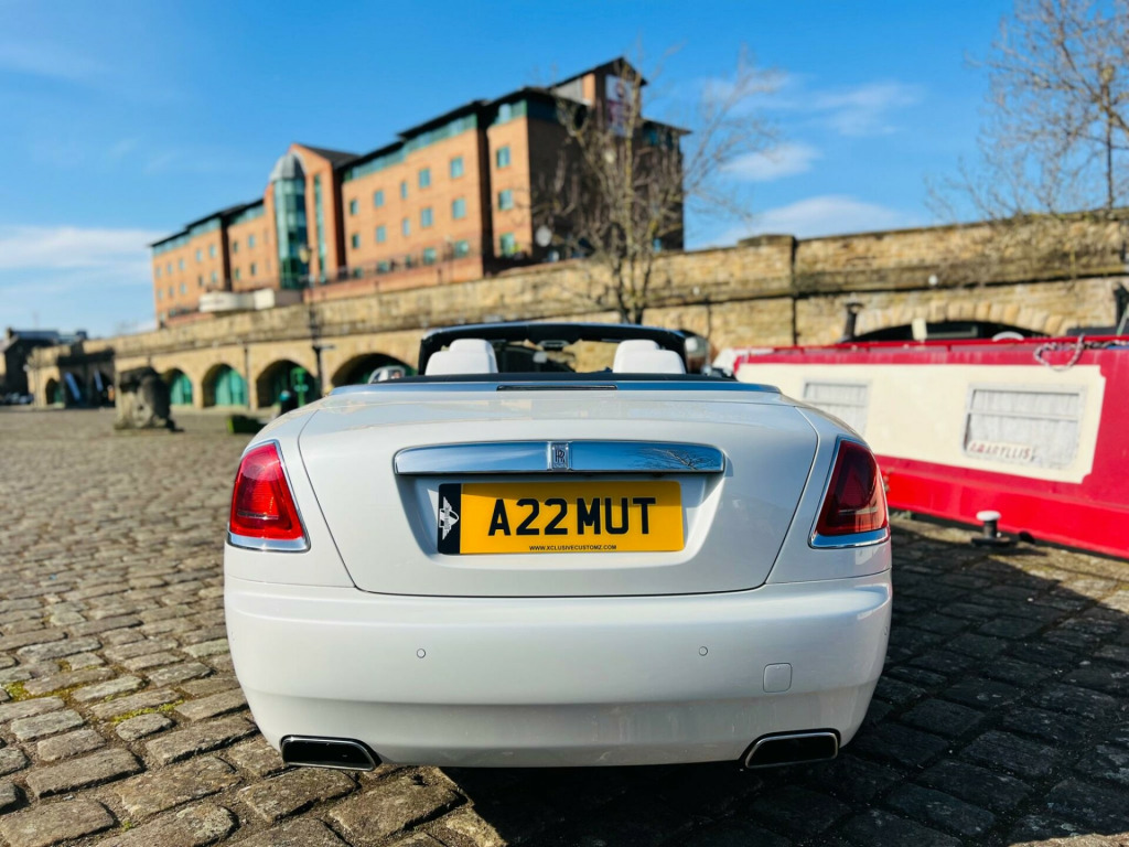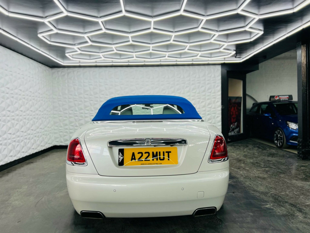 WE ARE PROUD TO OFFER This stunning 2017 (67) Rolls Royce Dawn Limited Edition Inspired By Fashion Edition arrived in our showroom recently finished in Bespoke Andulcian White Pearl with contrasting Colbalto Blue elements through the interior and exterior. Specification includes; Head-up Display, 21'' 7 Spoke Polished Alloy Wheels, 360 Camera, Front and Rear Parking Sensors, Soft Close Doors, Dynamic Cruise Control, 4 Zone Climate Control, Heated Electric Front Seats, Premium Audio, Heated Rear Seats and, Apple/Android Connect and more! HERE AT E.S.A AUTOMOTIVE LTD WE OFFER AS STANDARD A 12 MONTHS AA BREAKDOWN COVER, 5 DAY DRIVEAWAY INSURANCE & A COMPREHENSIVE 3 MONTHS WARRANTY ON ALL VEHICLES. RESERVE ANY VEHICLE WITH A £100 REFUNDABLE DEPOSIT. WE HAVE A HUGE PANEL OF LENDERS FOR GOOD&BAD FINANCE SO WHY NOT CALL US TODAY. WE ARE COMMITED TO THE AA CARS STANDARDS & ALSO TRADING STANDARDS APPROVED. WE ARE THE PROUD WINNERS OF THE AUTOTRADER RETAILERS CUSTOMER CHOICE AWARD WINNER FOR 2020, ALSO THE PROUD WINNERS OF THE 2021/22 CAR DEALER OF THE YEAR (YORKSHIRE) PRESTIGE AWARD AND FINALLY WE HAVE WON THE CAR/VAN DEALER OF THE YEAR (SOUTH YORKSHIRE) 2023. WITH 100 PERCENT POSITIVE VERIFIED REVIEWS & SELECTED HIGHLY RATED BY AUTOTRADER 2019,20,21,22&2023. WE TAKE PRIDE IN NOT JUST SELLING CARS BUT AN AMAZING AFTERCARE SERVICE. CALL THE TEAM TODAY TO START YOUR CAR BUYING JOURNEY.. 10.25in Colour Display - Concealed Behind an Openable Veneered Cover, 12v Power Outlet - Front, 20.5GB Hard Disc for Music Files from either USB or CD Player, 20in Alloy Wheels - 7 Spoke, ABS - Anti-Lock Brakes, ARS - Anti Roll Stabilisation, Airbag - Driver and Front Passenger Knee, Airbag - Intelligent Driver, Airbag - Intelligent Front Passenger, Amplifier - 10x Channel 600Watt, Assist Telematics Services with One Button Actication, Auto On Headlights, Autonomous Emergency Braking, Auxiliary Input Socket, Bamboo Cashmere Headlining, Black Hood, Bluetooth Connection for Phone, Body-Coloured Front and Rear Bumpers, CBC - Cornering Brake Control, Camera System - Side Rear and Top View, Centre Console - Full Length with Storage, Chrome Plated Visible Exhausts, Climate Control - Four Zone, Comfort Entry System, Daytime Running Lights - LED, Door Mirrors - Body-Coloured Heated and Folding, Dynamic Brake Control, Dynamic Cruise Control with Speed Regulation Through Fuel Control or Braking, Dynamic Emergency Brake, Dynamic Stability Control, Dynamic Traction Control, ESC - Electronic Stability Control, Electric Parking Brake, Electric Soft Convertible Roof with Glass Rear Window, Electrically Retractable Spirit of Ecstasy Grille Ornament, Electronic Variable Damping Control, Electronically Regulated Coach Doors with Power Closing Assistance, Front Seat Active Head Restraints, Front and Rear Electric Windows, Grey Tinted Graduation Upper Band to Front Windscreen - Compatible with Toll Collection Devices, Headlights - Auto Levelling, Heated Rear Window, Immobiliser, Integrated Teflon Coated Umbrellas in Front Wings, LED Headlights, Laminated Glass with Climate Control Glazing, Mono Interior Scheme, On Board Handbook Containing Comprehensive Vehicle Information, Outside Temperature Display, Parking Sensors - Front, Parking Sensors - Rear, Pollen Filter, Premium Audio System - CD DVD Player with AM FM Radio, RTTI - Real Time Traffic Information, Rain Sensing Variable Speed Windshield Wipers, Roll Over Protection System, Satellite Navigation System, Seats - Electrically Adjustable Driver Seat, Seats - Electrically Adjustable Front Passenger Seat, Seats - Front Heating, Seats - Height Adjustable Front Seats with Pre-Tensioners, Seats - Rear Heating, Self Righting Wheel Centres, Side Parking and Rear Lights - LED, Smart Card-Smart Key with Keyless Entry inc Keyless Start, Soft Close Latches for All Doors, Speakers x16, Spirit of Ecstasy Rotary Controller with Touch Function and Script Recognition, Steering Wheel - Full Leather Covered, Steering Wheel - Multi Function, Subwoofers, Suspension - Self Leveling, Trip Computer, Tyre Pressure Monitor, Tyres - Low Rolling Resitance, USB Input Socket, Vehicle Security System with Interior Motion Detector and Engine Immobilisation, Vehicle Speed-Proportional Power Steering, Veneer - Piano Black, Voice Activating System for Entertainment Functions, Voice Activating System for Navigation, Voice Activating System for Telephone, Wind Deflector, Interior Leather, Mono Interior Environment, Visible Twin Exhaust Tailpipes, Bespoke Dawn Clock, VIN Plate, Coachline - Single. Full dealership history