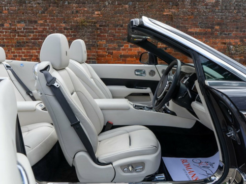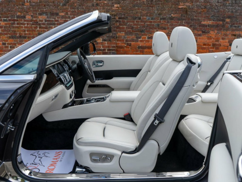 Romans of St Albans are delighted to offer this stunning Rolls-Royce Dawn 6.6 V12 Convertible, beautifully specified with a host of desirable features including: 21" Seven Spoke Part Polished alloy wheels, Drivers Assistance Systems Three, Head-Up Display, Night Vision with pedestrian recognition, Chrome Exhausts, Convenience Door Pocket Lighting, Rolls-Royce Bespoke Audio, Seat Piping in Mono, Seat Piping with Door Contrast, Complete Natural Grain Leather, Drivers Assistance Systems One, Self Closing Doors and much more! ...FINANCE AVAILABLE. A £299 admin fee applies to third party finance companies being used. ULEZ COMPLIANT. FREE ON-SITE PARKING (ASK FOR DETAILS.) Romans after care package includes: Romans warranty for 6 months (12,24 & 36 months are available), Main dealer cover available, Free breakdown cover for warranty duration, Full Romans service prior to delivery, 84 point vehicle inspection, 12 months MOT, Free Lifetime MOT when servicing with us (ask for details), Total value of package: £2000 - ALL INCLUSIVE IN THE PRICE. All of our clients have the added peace of mind that we have our own workshop facilities with free courtesy cars. Part Exchange very welcome, nationwide delivery also available. To avoid a wasted journey we highly recommend making an appointment, so call us now to get yours booked! Romans provide the highest of quality vehicles, and have at least 80 cars in stock at any one time. This means not all cars can be kept on site. Chrome exaust, Drivers Assistance Systems One, Drivers Assistance Systems Three, Natural Grain Leather - Creme Light, Seat Piping, Black Cashmere Headlining, Rolls-Royce Bespoke Audio, Bespoke Interior Scheme - Module Editing, 21in Alloy Wheels - 7 Spoke Part Polishe, 10.25in Colour Display - Concealed Behin, 12v Power Outlet - Front, 20.5GB Hard Disc for Music Files from ei, 20in Alloy Wheels - 7 Spoke, ABS - Anti-Lock Brakes, ARS - Anti Roll Stabilisation, Airbag - Driver and Front Passenger Knee, Airbag - Intelligent Driver, Airbag - Intelligent Front Passenger, Amplifier - 10x Channel 600Watt, Assist Telematics Services with One Butt, Auto On Headlights, Autonomous Emergency Braking, Aux