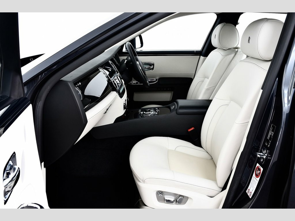 Darkest Tungsten metallic with Seashell Premium Leather Interior, Demo plus 2 Owners from New covered only 30k miles, We are delighted to bring to the market this Gorgeous and very well specified Ghost with just the Perfect Spec and boasting outstanding value! THIS RR GHOST COST £230,000 NEW WITH THE FOLLOWING £29,990 EXTRA'S - Panorama Sunroof, Silver Satin Bonnet Finish, Stainless Steel Pinstripes, Drivers Assistance Systems One (Head Up Display, High beam assistant), Camera System - Side Rear and Top View, 20in Alloy Wheels, Chrome Plated Visible Exhausts, Comfort Entry System, Rear Theatre Configuration, Television Tuner, Contrast Stitching, Contrast RR Monogram to All Headrests, Extended Leather and Door Pocket Lighting, Lambswool Foot Mats, Universal Garage Door Opener, Veneer - Piano Black. STANDARD GHOST FEATURES INCLUDE - Xenon headlights + auto levelling and power wash, Heated washer jets, Electric folding and heated door mirrors, Climate comfort windscreen and glass, Automatic soft closing doors and boot lid, Automatic retraction of front spirit of ecstasy, Satellite navigation with 10.2" widescreen display + 12.5GB hard disc drive, Systems with voice recognition, Bluetooth phone integration system, Premium audio system, DAB Digital radio, USB interface, 4 zone climate control, Heated front and rear seats, Fitted umbrellas - 2 Rolls Royce, Electrically adjustable front seats with lumbar support and memory settings, Leather multi function Panorama Sunroof, Silver Satin Bonnet Finish, Stainless Steel Pinstripes, Drivers Assistance Systems One, Camera System - Side Rear and Top View, 20in Alloy Wheels, Chrome Plated Visible Exhausts, Comfort Entry System, Rear Theatre Configuration, Television Tuner, Contrast Stitching, Contrast RR Monogram to All Headrests, Extended Leather and Door Pocket Lightin, Lambswool Foot Mats, Universal Garage Door Opener, Veneer - Piano Black