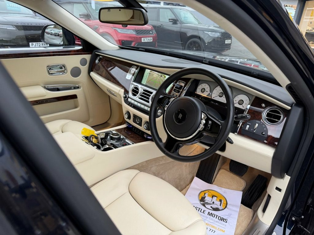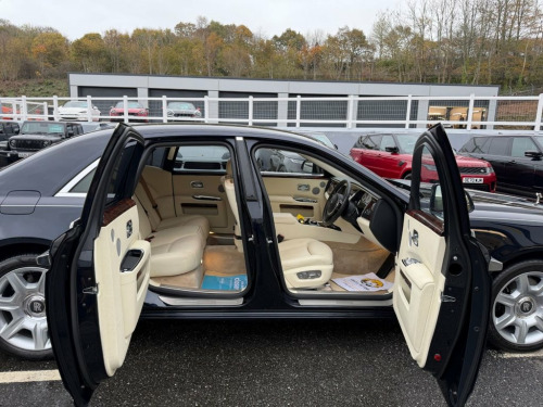 Ghost 6.6 V12 563bhp Saloon. Sapphire Black Metallic with Cream leather, exceptional Ghost covered only 19,750 miles by just two keepers with Rolls Royce service history, including recent service. High specification includes Walnut inlays, 3-zone climate control, heated front and rear seats, sun protection glass, we inch wheels, coachline, power tailgate, adjustable suspension, cruise control, reversing camera, Navigation and much more This vehicles condition must be seen to be appreciated, certainly the finest for sale today at £98,500. 12v Power Outlet - Front, 12v Power Outlet - Rear, 19in Alloy Wheels, 3rd Brake Light with LED Prism Technolog, ABS - Anti-Lock Brakes, Adaptive Headlights, Air Conditioning - Rear, Airbag - Driver and Front Passenger Knee, Airbag - Front and Rear Curtain, Airbag - Front Side, Airbag - Intelligent Driver, Airbag - Intelligent Front Passenger, Anti-Theft Protection inc Interior Monit, Ashtray - Front and Rear, Auto-Dimming Rear View Mirror, Automatic Door Closing - Side Doors and , Automatic Front and Rear Suspension Leve, Auxiliary Input Socket and USB Input Soc, BAS - Brake Assist System, Bluetooth Connection for Phone, Body-Coloured Front and Rear Bumpers, Carpet Foot Mats, CBC - Cornering