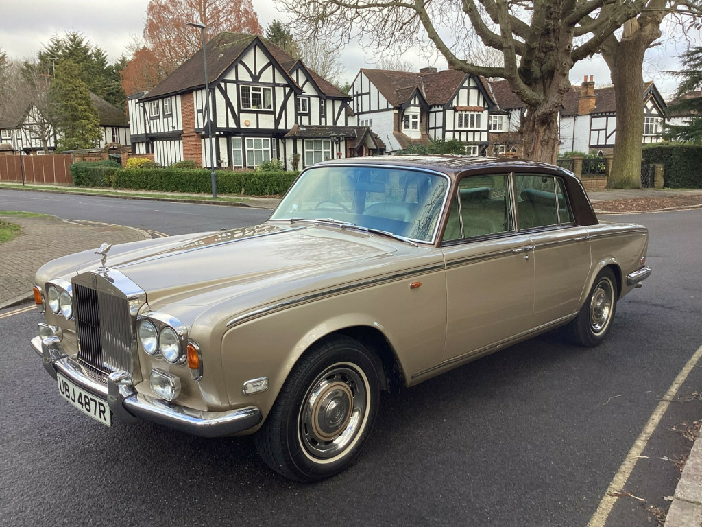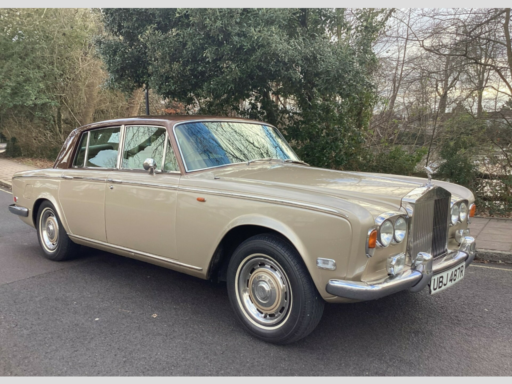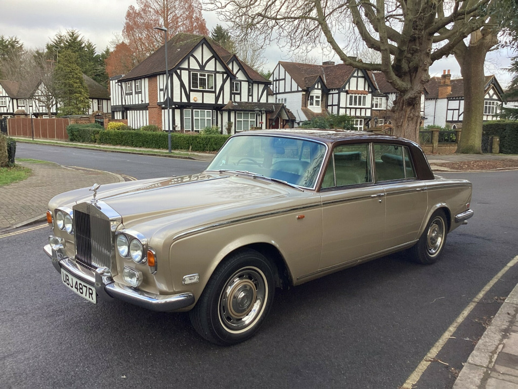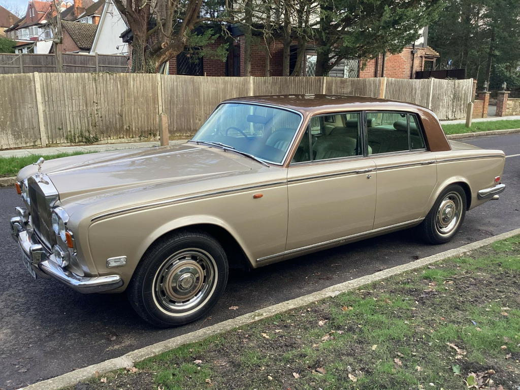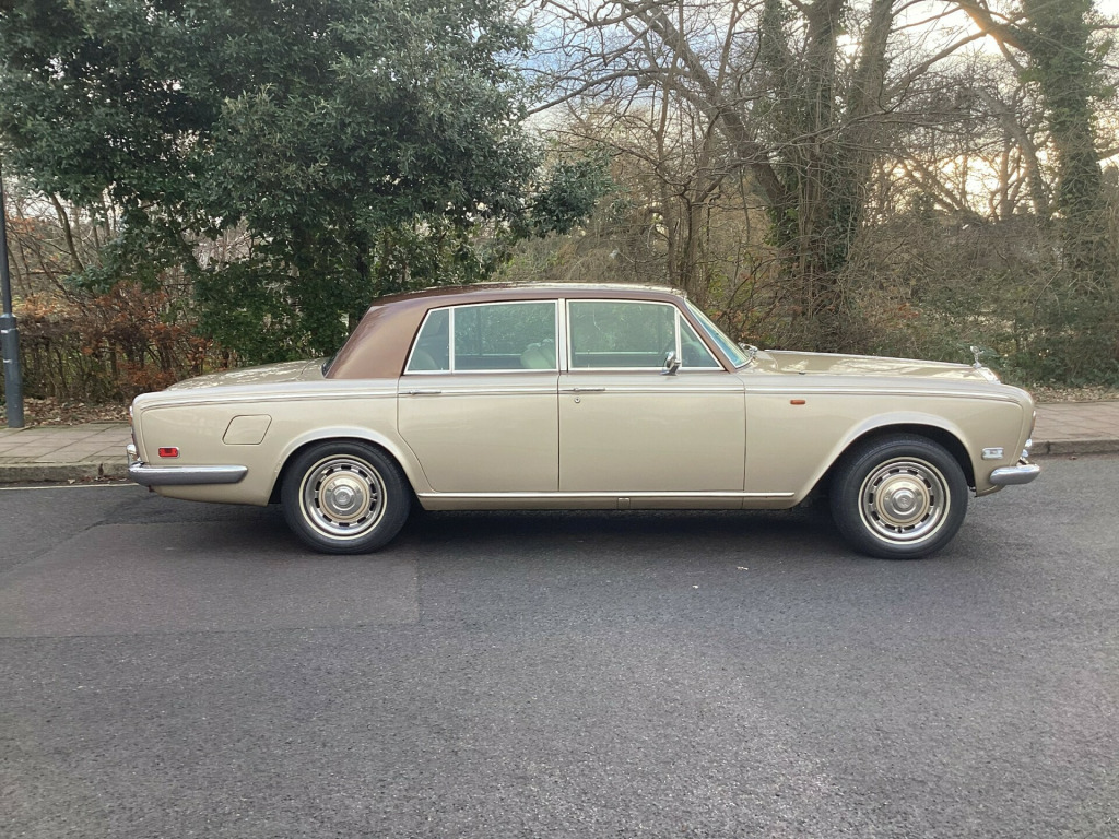 A magnificent original Final Series 1 Flared Arch Silver Shadow finished in Silver Sand Metallic with Walnut Top Hat and Beige Leather interior. 83,200 miles with Service History from New. Supplied by us 6 years ago and maintained regardless of cost by Silver Lady of Brentwood who have looked after the car for 40 years. Woodwork refurbished including the hockey stick under the window. Brakes overhauled. All window seals replaced. No exhaust issues. Good chromework. All bills. Avon White Walls. Working 8 Track player. Leather Dash and Knee Roll. MOT/ Tax/ ULEZ Exempt. Has been MOT with no advisories for the lat few years. Kept garaged. Delivery and Warranty arranged at extra cost.,