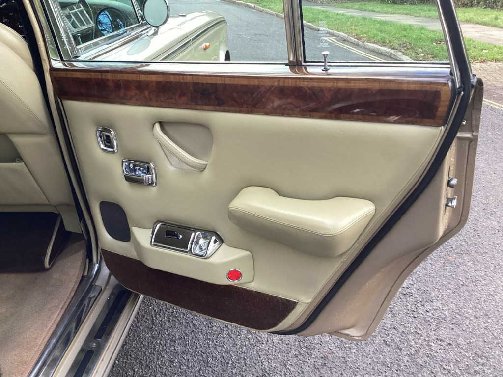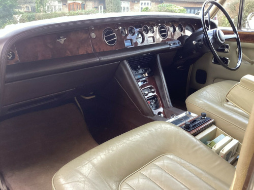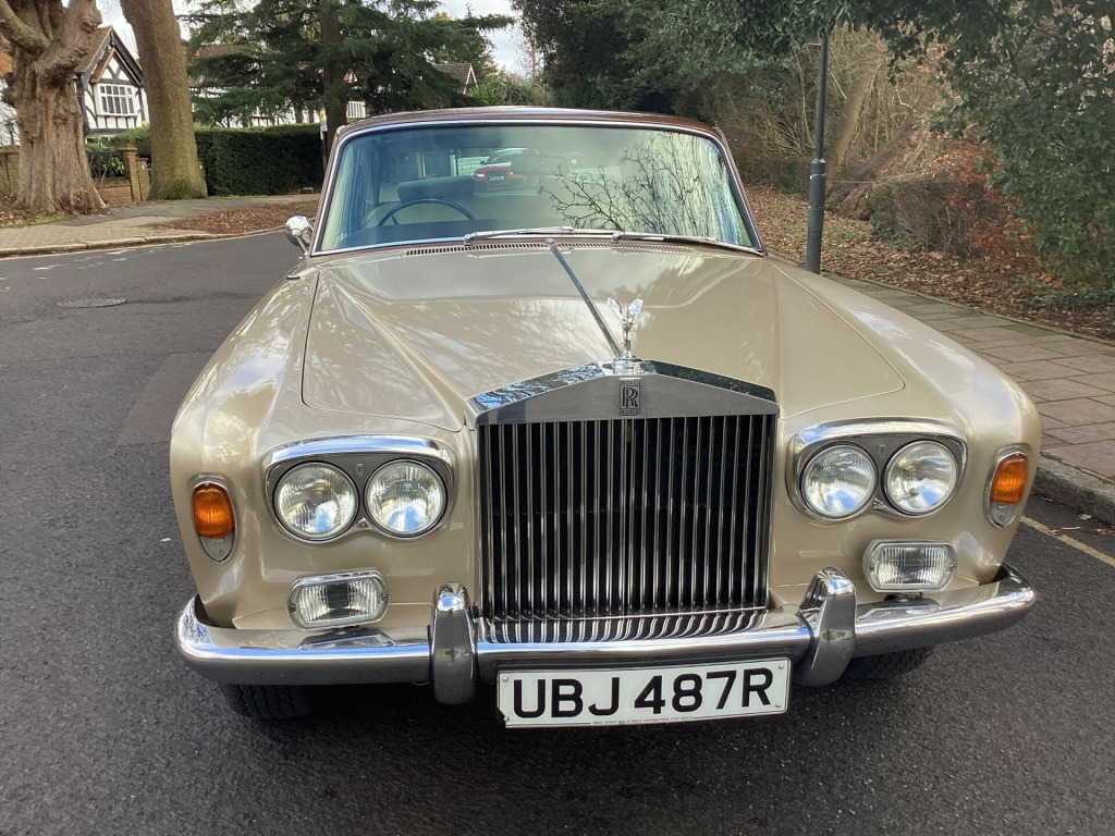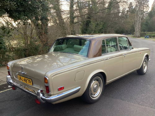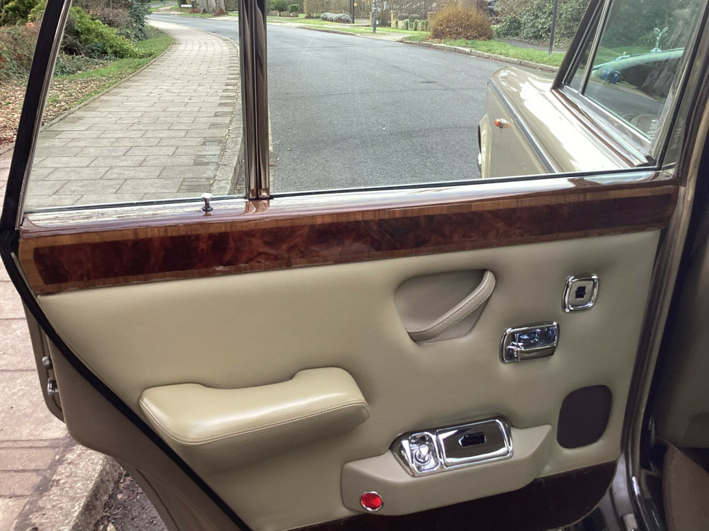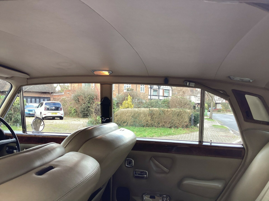 A magnificent original Final Series 1 Flared Arch Silver Shadow finished in Silver Sand Metallic with Walnut Top Hat and Beige Leather interior. 83,200 miles with Service History from New. Supplied by us 6 years ago and maintained regardless of cost by Silver Lady of Brentwood who have looked after the car for 40 years. Woodwork refurbished including the hockey stick under the window. Brakes overhauled. All window seals replaced. No exhaust issues. Good chromework. All bills. Avon White Walls. Working 8 Track player. Leather Dash and Knee Roll. MOT/ Tax/ ULEZ Exempt. Has been MOT with no advisories for the lat few years. Kept garaged. Delivery and Warranty arranged at extra cost.,