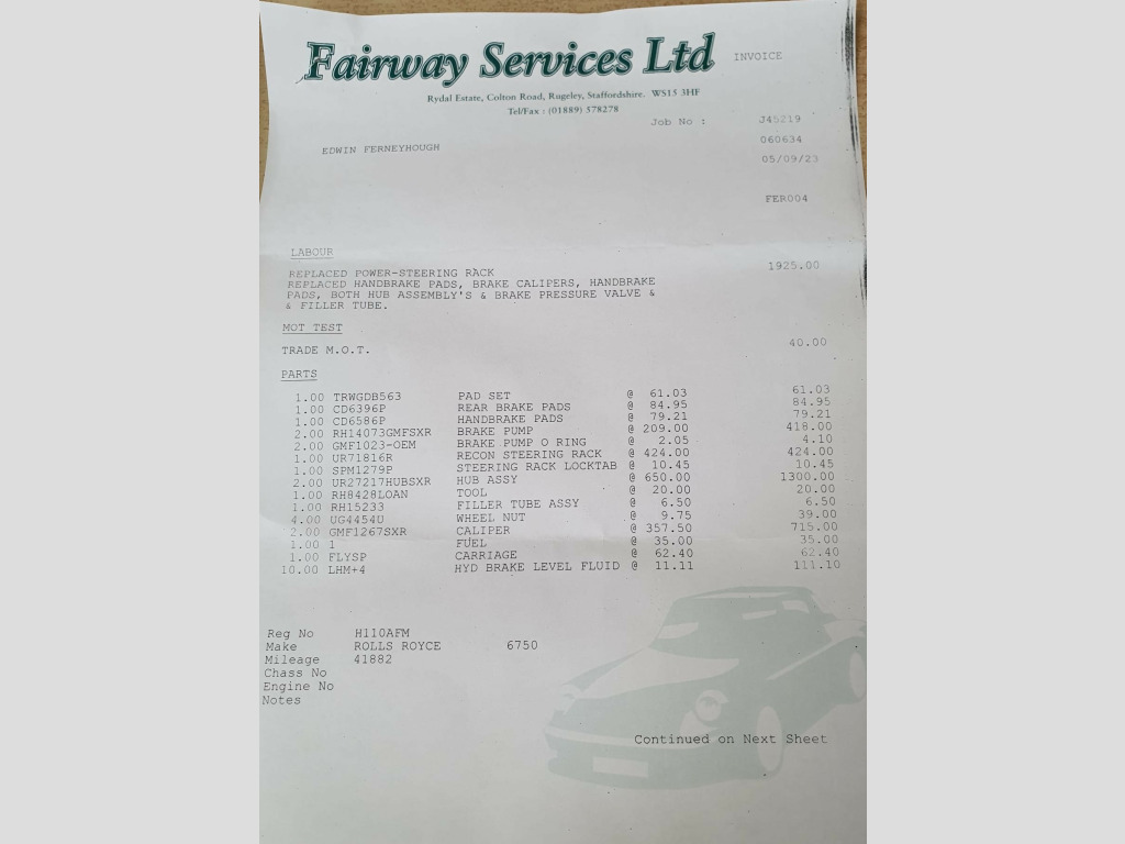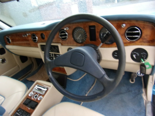A fantastic opportunity to acquire this luxury saloon finished in Rhapsody Blue with a Cream Everflex roof and Tahiti Blue rolltop. This Silver Spirit II has covered just 42,000 miles under 6 former keepers, which is backed up by a vast array of MOT certificates dating back to 1994. First registered to Rolls-Royce Motors as their demonstrator car and then registered by a husband and wife respectively. Evidently well looked after in recent years with a number of invoices from Rolls-Royce and Bentley specialists, PME.The Rhapsody Blue paintwork presents very well and inside the opulent cabin we find Cream Connolly leather with Tahiti Blue piping and lamb's wool rugs, Norse Blue Witton carpets, Burr Walnut, electric, heated, memory front seats, electric windows, electric mirrors, polished metal trim and climate control.Having driven this Silver Spirit II ourselves, we can confirm it drives well and holds the road superbly, the ride is smooth and quiet with no unwanted noises coming from the gearbox or suspension. Be sure not to miss out on this fantastic 90s British luxury icon. - the last picture is a bill for works just completed, PLEASE RING TO VEIW THE VEHICLE ,IT IS IN DRY STORAGE AND NOT ON SITE