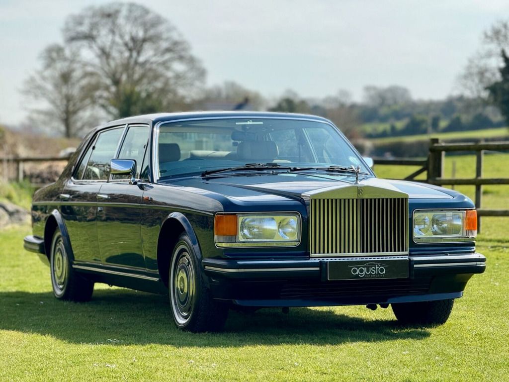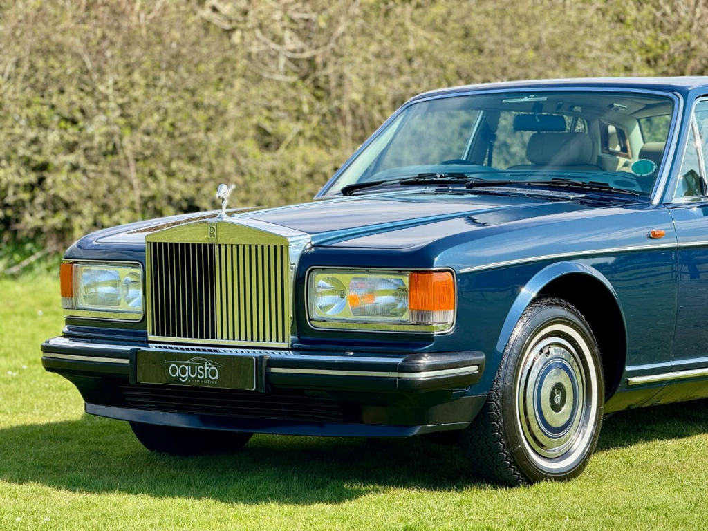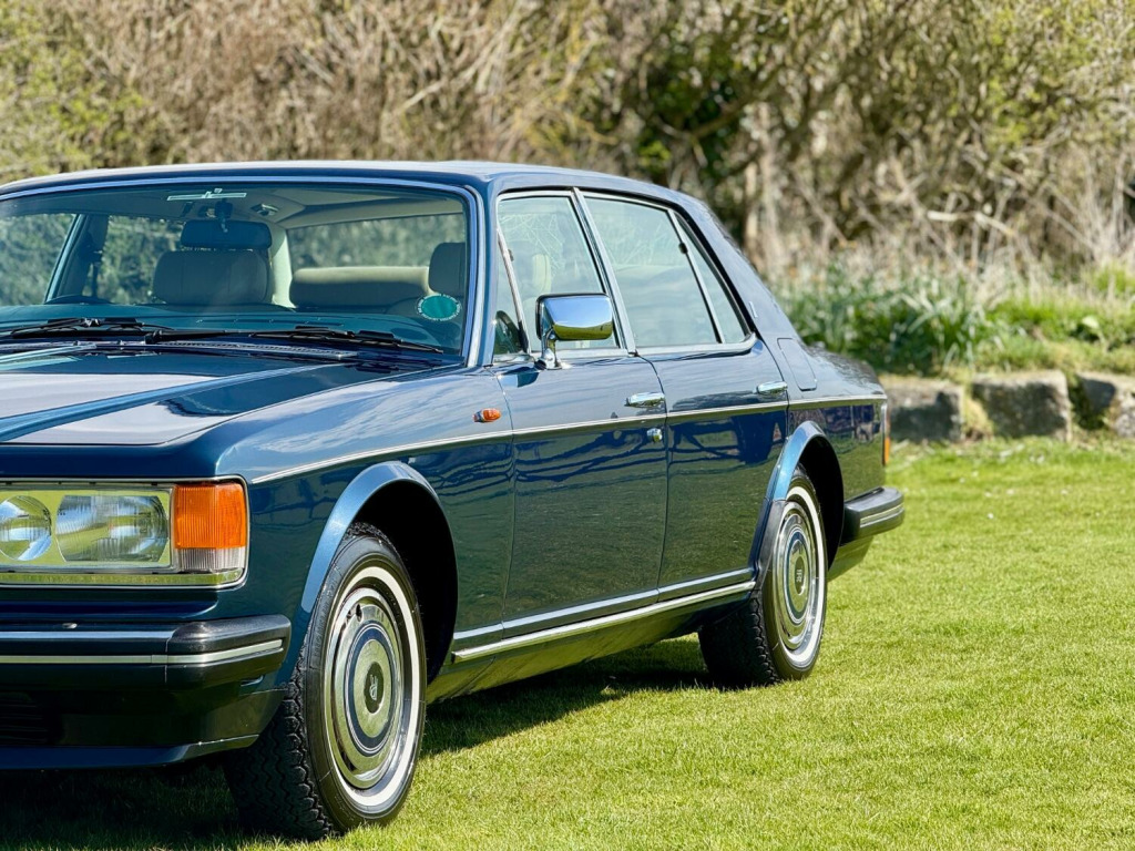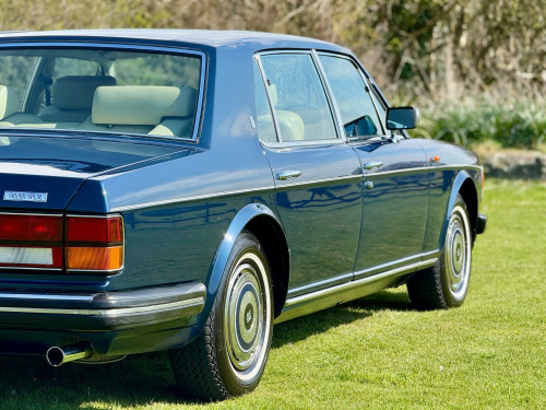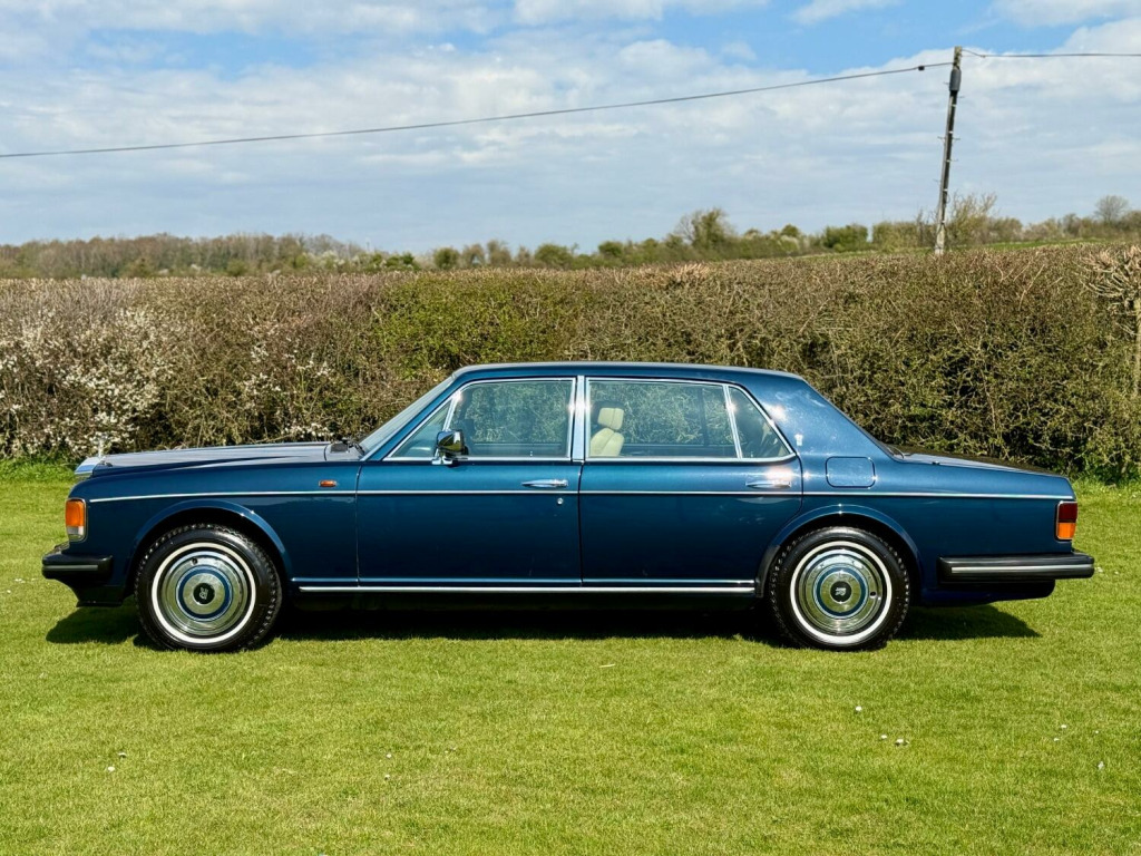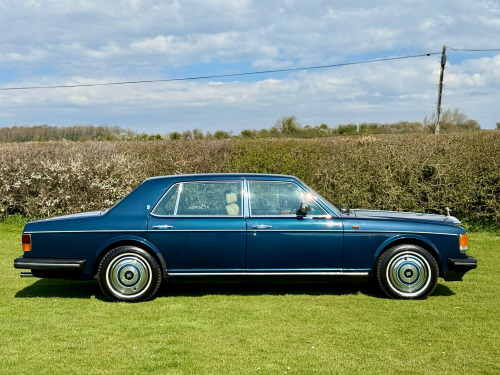 We are delighted to have this stunning 1987 Rolls Royce Silver Spur 6.8 LWB in stock. , Finished in beautiful Windsor Blue metallic with Beige leather interior piped Blue and sumptuous Burr walnut inlays. This particular example is the more desirable 6.8 V8 with Fuel injected and has covered a low 58000 miles from new with a lovely complementing service history having just been serviced along with the rear suspension overhauled, New Whitewall tyres allround, Steering rack and more, , The Silver Spur was a limited run of essentially a long wheelbase silver spirit featuring more luxury items such as longer rear leg room, Walnut picnic tables, Vanity mirrors etc, In lovely condition throughout and very original with features including Electric Mirrors, Electric seats with memory, Electric windows, Cruise control, Air conditioner, Original radio, Blue lambswool over-rugs along with a set of beige Lambswool over rugs, Soft indoor car cover, Chrome Hub caps, White wall Tyres, Coachlines and more…, This limited LWB Spur Rolls Royce is a pleasure to drive and own and only appreciating in value! A usable Classic British marque that oozes class and makes you feel very special wafting along as you pier down the bonnet to the magnificent Silver Lady