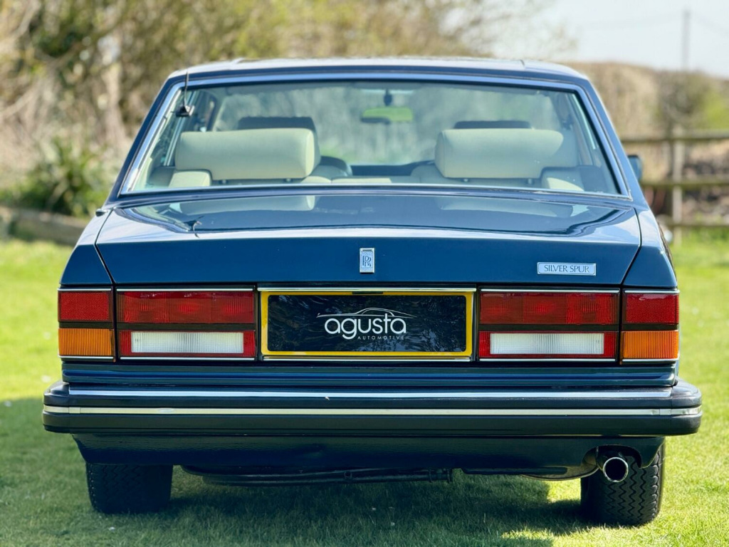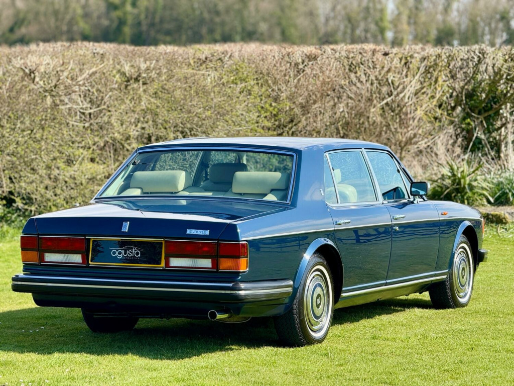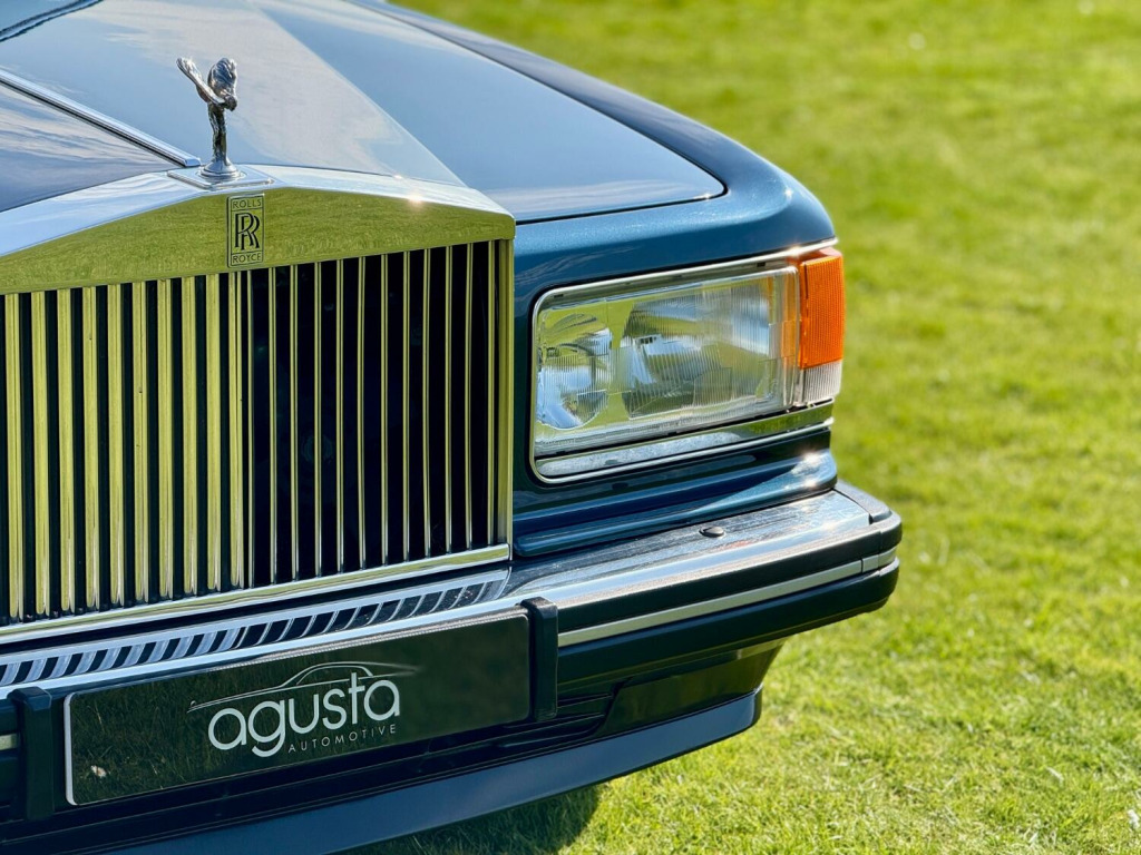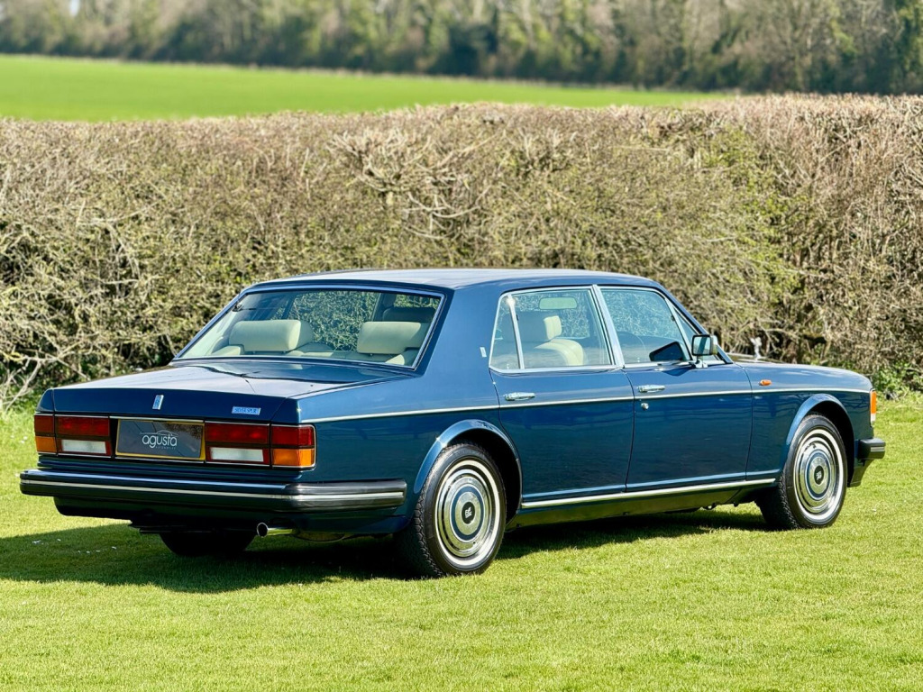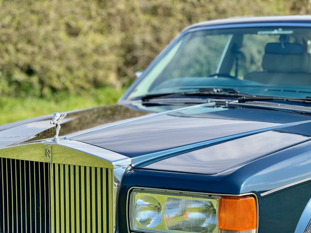 We are delighted to have this stunning 1987 Rolls Royce Silver Spur 6.8 LWB in stock. , Finished in beautiful Windsor Blue metallic with Beige leather interior piped Blue and sumptuous Burr walnut inlays. This particular example is the more desirable 6.8 V8 with Fuel injected and has covered a low 58000 miles from new with a lovely complementing service history having just been serviced along with the rear suspension overhauled, New Whitewall tyres allround, Steering rack and more, , The Silver Spur was a limited run of essentially a long wheelbase silver spirit featuring more luxury items such as longer rear leg room, Walnut picnic tables, Vanity mirrors etc, In lovely condition throughout and very original with features including Electric Mirrors, Electric seats with memory, Electric windows, Cruise control, Air conditioner, Original radio, Blue lambswool over-rugs along with a set of beige Lambswool over rugs, Soft indoor car cover, Chrome Hub caps, White wall Tyres, Coachlines and more…, This limited LWB Spur Rolls Royce is a pleasure to drive and own and only appreciating in value! A usable Classic British marque that oozes class and makes you feel very special wafting along as you pier down the bonnet to the magnificent Silver Lady