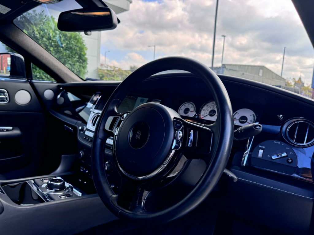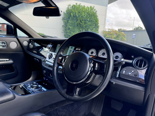 2017 ROLLS ROYCE WRAITH | ROLLS ROYCE SERVICE HISTORY | JUST BEEN SERVICED @ ROLLS ROYCE| STARLIGHT ROOF| SATNAV| BLACK BADGE WHEELS| 12 MONTHS MOT| FINANCE AVAILABLE | IMMACULATE CONDITION INSIDE OUT|. 10.25in Colour Display - Concealed Behind an Openable Veneered Cover, 20.5GB Hard Disc for Music Files from either USB or CD Player, 20in Alloy Wheels, 3rd Brake Light with LED Prism Technology, ABS - Anti-Lock Brakes, Airbag - Driver and Front Passenger Knee, Airbag - Head Protection System Front and Rear, Airbag - Intelligent Driver, Airbag - Intelligent Front Passenger, Aluminium Bonnet and Composite Boot Lid, Auto On Headlights, Auxiliary Input Socket and USB Input Socker for Multi Media, Bluetooth Connection for Phone, Climate Control - Four Zone, Convenience Door Pocket Lighting, Cornering Brake Control, DAB Radio, Door Mirrors - Body-Coloured Heated and Folding, Dynamic Brake Control, Dynamic Cruise Control with Speed Regulation Through Fuel Control or Braking, Dynamic Emergency Brake, Dynamic Stability Control, Dynamic Traction Control, Electric Parking Brake, Electrically Retracting Spirt of Ecstasy Grille Ornament, Electronic Variable Damping Control, Electronically Regulated Coach Doors with Power Closing Assistance, Front Seat Active Head Restraints, Front and Rear Electric Windows, Grey Tinted Graduation Upper Band to Front Windscreen - Compatible with Toll Collection Devices, High Pressure Headlight Cleaners, Hill Hold Function, ISOFIX and Top Tether Child Seat Preparation, Independent Front Wishbone Suspension with Stabiliser Bar and Air Springs, Independent Rear Multi-Link Suspension with Stabiliser Bar and Air Springs, Integrated Teflon Coated Umbrellas in Front Wings, Laminated Glass with Climate Control Glazing, Mobile Application Preparation, On Board Handbook Containing Comprehensive Vehicle Information, Parking Sensors - Front, Parking Sensors - Rear, Power Open and Close for Luggage Compartment Lid, Premium Audio System - CD DVD Player with AM FM Radio, Rain Sensing Variable Speed Windshield Wipers, Remote Power Locks, Rolls-Royce Assist Telematics, Satellite Navigation System, Seats - Electrically Adjustable Driver Seat, Seats - Electrically Adjustable Front Passenger Seat, Seats - Heated Electrically Adjustable Front, Self Righting Wheel Centres, Side Parking and Rear Lights - LED, Soft Close Latches for All Doors, Speakers x16, Spirit of Ecstasy Rotary Controller with Touch Function and Script Recognition, Steering Wheel - Full Leather Covered, Steering Wheel - Multi Function, Subwoofers, Trip Computer, Tyre Pressure Monitor, Vehicle Information Featuring On-Board Diagnosis and Condition Based Servicing, Vehicle Security System with Interior Motion Detector and Engine Immobilisation, Vehicle Speed-Proportional Power Steering, Visible Exhaust Tailpipes, Voice Activating System for Radio - Phone - Nav System, Wood Veneer on Fascia Centre Console and Door Panniers, Xenon Headlights with Auto-Levelling.