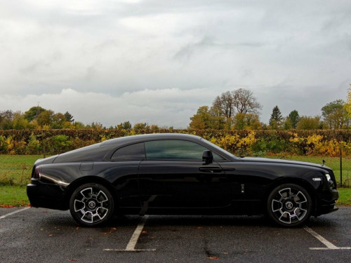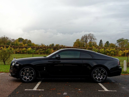 The Essex Car Group Ltd are delighted to offer this Stunning Rolls-Royce Wraith Black Badge (ULEZ EURO 6) in Black with Full with Full Back leather interior.. Spec includes, 21in 5 Split spoke alloys in Gloss Black, Head-Up Display, Full black pack, Heated front seats, Tyre Pressure Monitoring, Comfort Entry System, Rear View Camera, Adaptive LED Headlights, High-Beam Assistance, Lane Departure Warning, Side View Cameras, Satellite Navigation, Head-Up Display, Chrome Plated Visible Exhausts, Starlight Headlining, Rain sensing windscreen wipers, Bespoke audio system, Carbon interior panels. RR in headrests, privacy glass, Bluetooth includes phone connection and music streaming, Connections for iPod (front) and USB (front), Remote controlled remote boot/hatch/rear door release, Upgraded warranty available. Finance available. Part ex-welcome. Please check spec with a member of staff as Autotrader spec can be incorrect. Please call to arrange a viewing 01277 283143 or 07432778538 (out of hours) Seat Piping - Centre Only, Starlight Headlining, Black, Rolls-Royce Bespoke Audio, Wraith CC Bespoke Clock, Black Side Frame Finishers, Lambswool Foot Mats, Comfort Entry System, Natural Grain Leather - Black, Body Coloured Wheel Centres, Rear Privacy Glass, RR Monogram to All Headrests, 21in Alloy Wheels - 5 Spoke Part Polishe, 10.25in Colour Display - Concealed Behin, 20.5GB Hard Disc for Music Files from ei, 3rd Brake Light with LED Prism Technolog, ABS - Anti-Lock Brakes, Adaptive Headlights, Airbag - Driver and Front Passenger Knee, Airbag - Head Protection System Front an, Airbag - Intelligent Driver, Airbag - Intelligent Front Passenger, Aluminium Bonnet and Composite Boot Lid, Auto O
