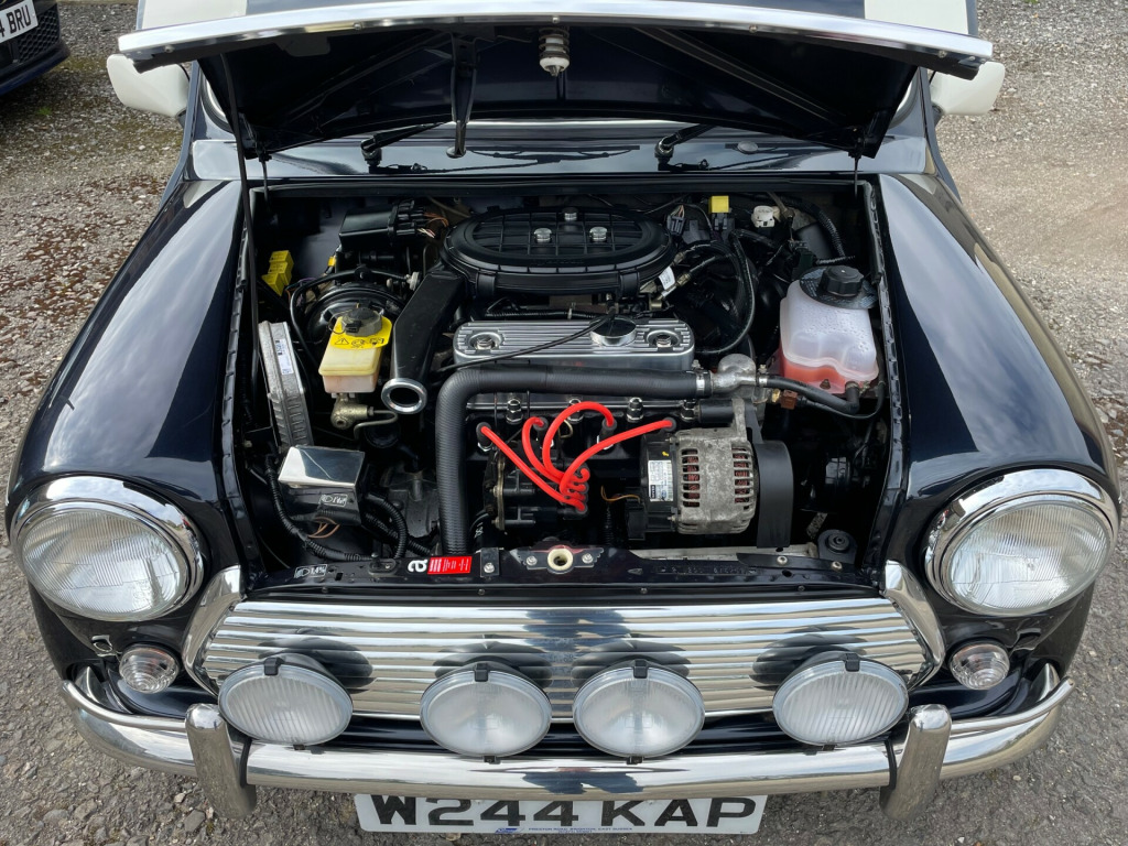 This beautiful 2000 Rover Mini Cooper Sport is available .Finished in RARE Anthracite Met with white roof, bonnet stripes and mirrors and Black Leather interior. A totally original and unrestored Mini Cooper that has only covered just 9000 miles from new in absolutely stunning condition. Beautiful original factory Paintwork all over,free of any dents together with an almost unused immaculately kept interior with gorgeous black leather cooper embossed seating. Please note,the wooden dashboard is faultless,no scratches,or any marks,one of the pictures simply shows a flash reflection. Its Local Sussex Lady Owner from new in March 2000 purchased this cooper from Caffyns of Brighton and kept the mini until August 2024 with at that point a mileage of only 8856miles, all documented in its History file by MOT certificates and an HPI vehicle history check. Kept in the family home's garage the car has been loved and used sparingly, in fact less than 4000miles in the last 20yrs.The Chassis is superb and the whole car has been wax injected. A faultless MOT valid to 26th August 2026 has just been carried out and earlier this March 2025,by an Independent Local specialist Garage a full mechanical Re Commissioning including an up to date full pre-sale check, service and tune, all new oils, filters,master cylinder and a brake fluid change totalling the sum in excess of £1000, so important to have carried out on a vehicle of this age and low mileage use to ensure this cooper is absolutely at its very best for you, safe and ready to go and enjoy, proudly wearing its original dealer supplied number plates. I have also just fitted 4 Brand New correct replacement Cooper Sport Alloy Wheels ,tho the original ones showed only a few marks,I didn't want to refurb them as this example is so stunning it called out for New ones only.Do also have a careful look at the superb presentation and show condition of the under bonnet engine bay and compare to the other few in this league on the market, such attention to detail and a joy to present at the many Mini events around the country should you wish.The only addition I have made to its original factory specification during its preparation is I have fitted a Brand new mirror polished stainless steel 3'' single Round Rear Fletcher Exhaust Silencer system from Mini Sport parts,probably the best looking system you can buy for your Mini. I have the Cars Original Purchase invoice when new, showing the Factory Options,Sports Pack,Leather Trim and metallic Paint also many bills for maintenance, original handbooks and 2 sets of keys with the alarm fobs. I welcome you to come and view this almost certainly a prize winning exceptionally Low Mileage final generation edition of the 2000 Classic Mini Cooper Sport here Nr Chichester West Sussex. Please call me anytime to chat . ll leather, air bag, immobiliser, radio cassette, front head restraints, sports seats, sport suspension, alloy wheels, metallic paintwork, spare wheel
