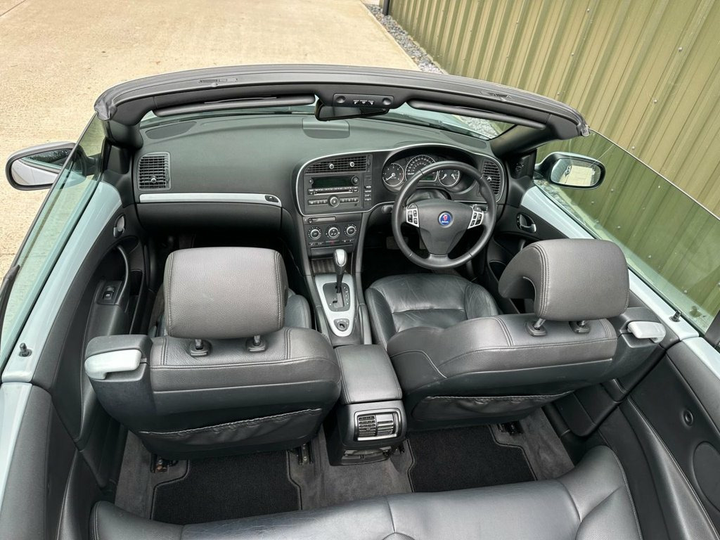 A very well-presented Saab 9-3 Convertible with a strong maintenance record and over £1,000 recently spent on servicing and upkeep. The car has had just four previous keepers and shows evidence of careful, long-term ownership throughout. The service history is comprehensive, with 11 stamps in the booklet including a timing belt replacement at 70,000 miles, and recent works to the convertible roof in December 2024 plus a new exhaust system fitted shortly after. It is HPI clear and supplied with two remote keys, the current V5C, stamped service book, maintenance invoices, and has just been MOT tested. Specification highlights include heated leather seats, air conditioning, Bluetooth connectivity, and paddle-shift automatic transmission. Finished in Snow Silver Metallic with Black leather upholstery and a Black fabric roof, the colour combination suits the car perfectly — the silver paint has a crisp white tint that catches the light beautifully, giving the car real presence in person. Adjustable Steering Column/Wheel, Air Bag Driver, Air Bag Passenger, Air Bag Side, Air-Conditioning, Alarm, Alloy Wheels (17in), Anti-Lock Brakes, Armrest, Body Coloured Bumpers, Carpet, Central Door Locking, Centre Console, Climate Control, Computer (Driver Information System), Cruise Control, Cup Holder, Deadlocks, Electric Windows (Front/Rear), Electronic Brake Force Distribution, External Temperature Display, Extra Storage, Front Fog Lights, Gear Knob Leather, Head Air Bags, Head Restraints, Immobiliser, In Car Entertainment (Radio/CD/MP3), Mirrors External, Power Socket, Power-Assisted Steering, Satellite Navigation, Seat Belt Pre-Tensioners, Side Protection Mouldings, Spare Wheel, Spea