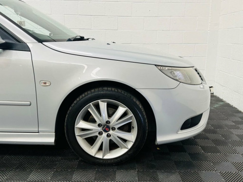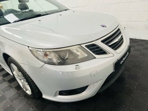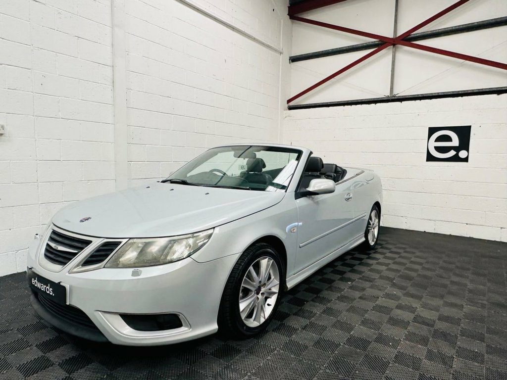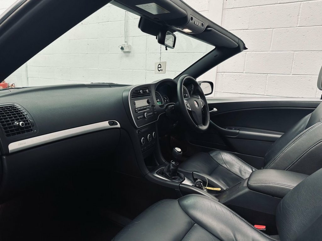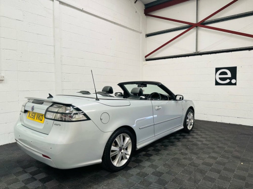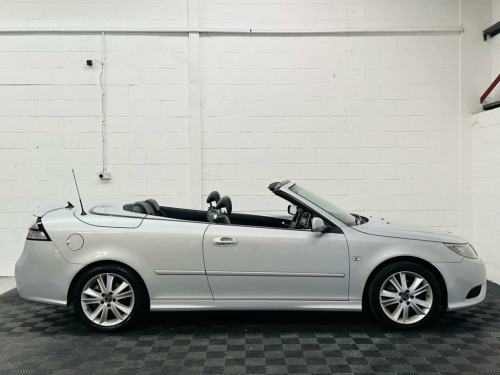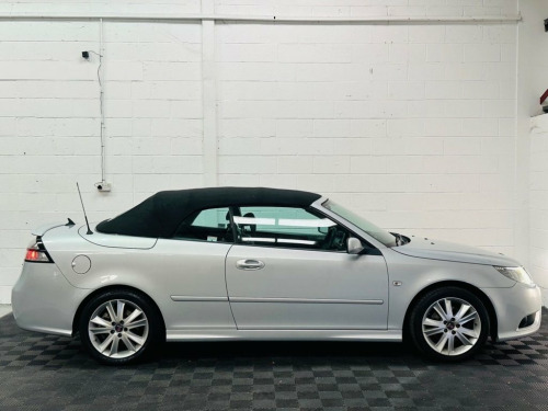 A superb Saab 9-3 2.0T Aero Convertible in Silver with Black Leather Interior. Heated Seats, Service History. 17in 5Spoke Low- Split Alloy Wheels, 18in 10Spoke Alloy Wheels, 18in 10Spoke Alloy Wheels with Tyre pres, Bi- Xenon Headlights with Auto levelling, Black hood, Drivers Seat manual height adjust, ES1- 7 Radio & Single CD & 7 Spe, Lowered Sport chassis, Metal finish Trim, Sports Leather Steering Wheel