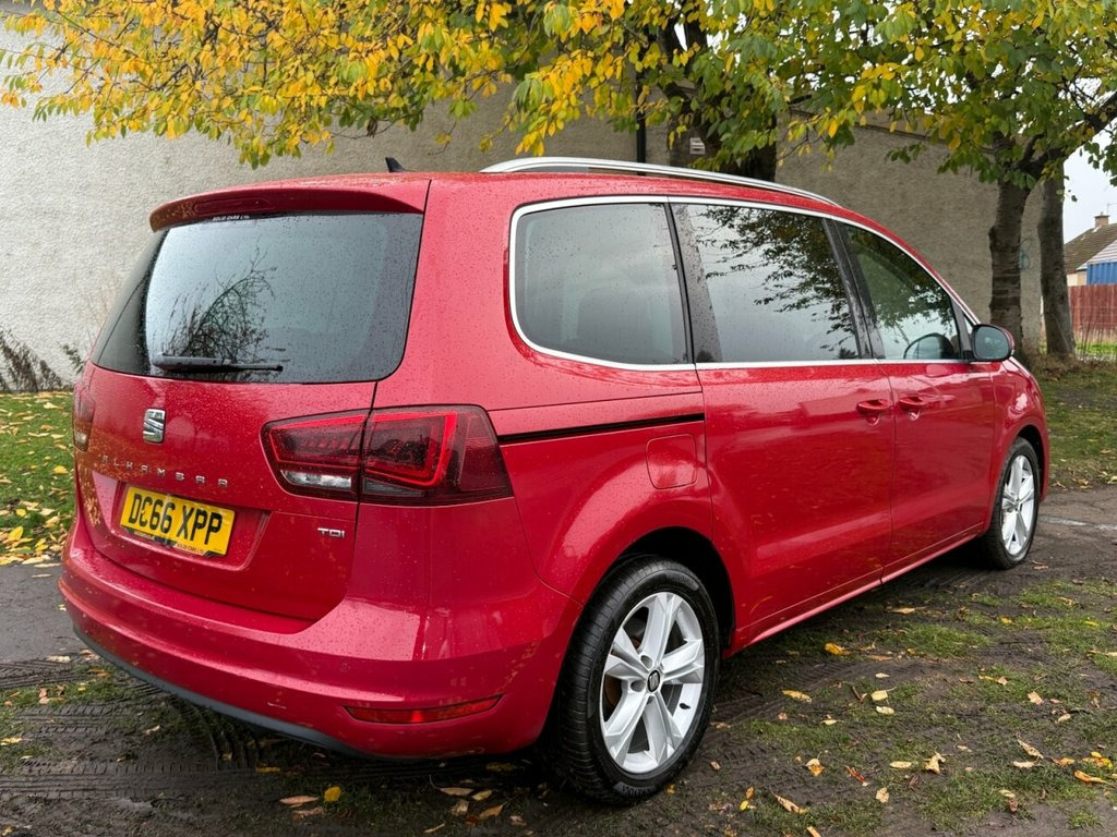 2 Keys+Fresh Service along with New Rear discs and Pads+MOT July 26+Ready to Drive away This 2017 SEAT Alhambra TDI SE Lux offers exceptional value with its remarkably low mileage for its age, having covered just 61,120 miles. This seven seat MPV is powered by an efficient 2.0 litre diesel engine and meets Euro 6 emissions standards. It comes with a comprehensive full service history, with the last service completed at 61,120 miles, and boasts an MOT valid until July 2026. For your peace of mind, a 6 month warranty is included. The SE Lux trim level enhances your driving experience with a host of desirable features. Enjoy comfortable journeys with heated front seats, and navigate with ease thanks to the integrated navigation system and rear view camera, complemented by front and rear parking sensors. Automatic headlights ensure optimal visibility in all conditions. With a towing weight of 2200 kg and a 0-60mph acceleration time of 10.4 seconds, this Alhambra is a capable and practical choice, offering a refined and well equipped driving experience that sets it apart. 12-Way Electrically Adjustable Front Sea, 17in Alloy Wheels - Dynamic, 230V AC Euro Socket - 2nd Row Centre Con, Alarm - Perimeter and Interior Monitorin, Anti-Lock Braking System - ABS, Auto-Dimming Rear View Mirror, Auto-Headlights, Body-Coloured Bumpers, Body-Coloured Door Handles, Body-Coloured Door Mirrors with Integrat, Chrome Finish Roof Rails, Chrome Interior Dashboard Detailing, Chrome Side Window Trims, Combined USB and Aux-In Port, Coming Home - Leaving Home Headlight Fun, Covered Storage Compartments in 2nd Row , Cruise Control, Curtain Airbag, Dark Tinted Rear Windows, Driver and Front Passenger Airbags, Driver and Passenger Sunvisor with Cover, Drivers Knee Airbag, ESC - Electr