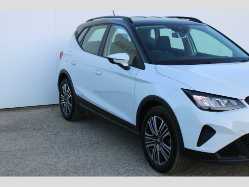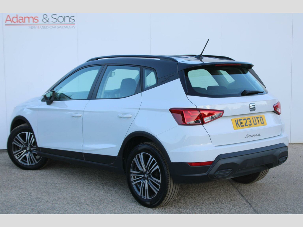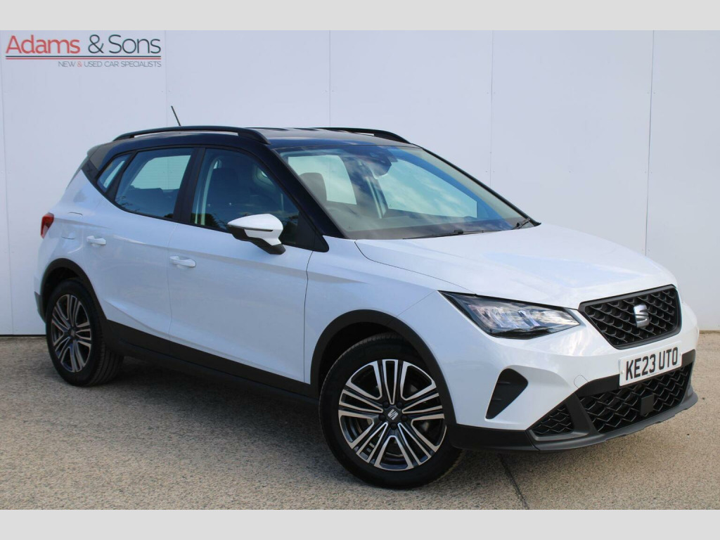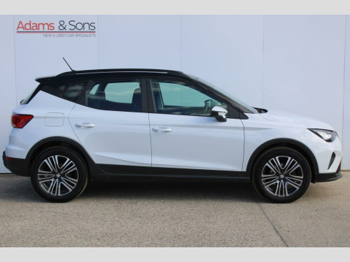 Lovely well kept condition throughout of this 2023 (23 Plate) Seat Arona 1.0 TSI EVO SE finished in desirable Glacial White metallic against contrasting grey interior. This car boasts a full Seat service history record, both remote key fobs are present and original owners manual. Specification includes all the essentials such as; Apple Carplay with Andriod Auto, Bluetooth hands free telephone, DAB radio, automatic LED headlights/wipers, and metallic paint. Further specification listed below. Low rate PCP/HP plans available upon request (subject to applicant). Here at Adams and sons we do not charge any dealer administration fees and pride ourselves on paramount customer service. All our cars are price checked daily to ensure you get the right car at the right price- Established business since 1932. Adams & Sons make every effort to ensure vehicle details on this listing are correct. However, the vehicle specifications can sometimes differ from that shown. Please satisfy yourself that a vehicle has a specific feature that is important to you before purchasing. Our staff will be happy to assist you.