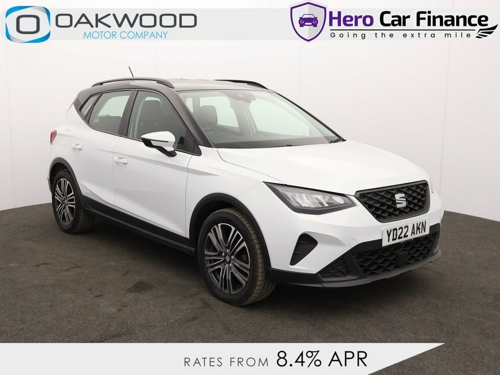 Oakwood Motor Company are delighted to offer this eye-catching SEAT Arona 1.0 TSI EVO SE Technology, finished in the crisp Nevada White with a contrasting Black Roof. With just one owner and in excellent condition, this compact crossover combines bold styling, practical features, and smart connectivity to deliver a well-rounded and enjoyable driving experience. The exterior stands out with 17-inch Dynamic machined alloy wheels, Eco LED headlights with LED daytime running lights, black roof rails and window surrounds, and a sporty rear spoiler. The contrast roof adds an extra touch of individuality and style to this already distinctive vehicle. Inside, the Arona offers a practical and refined cabin with split folding rear seats, a Titan Black dashboard, Satin Black cloth upholstery, and a flat-bottomed leather steering wheel, gear knob and handbrake lever as part of the Interior Chrome Pack. Air conditioning ensures comfort all year round, while rear parking sensors provide added convenience when manoeuvring. Technology features include the Connectivity Pack Plus, Full Link smartphone integration, a high-quality six-speaker audio system, DAB digital radio, and Bluetooth audio streaming with handsfree functionality. The infotainment setup is intuitive and user-friendly, ideal for everyday use and longer journeys alike. Safety and driver assistance systems include cruise control with speed limiter, lane keeping system, hill hold control, ISOFIX child seat mounting points in AM-FM Radio with DAB - Digital Audio Bro, Bluetooth Audio Streaming with Handsfree, Connectivity Pack Plus, Full Link Smartphone Integration, Six Speakers, 17in Alloy Wheels - Dynamic Machined, Black Roof Rails and Window Surround, Contrast Roof, Electrically Adjustable Door Mirrors, Rear Spoiler, Air Conditioning, Interior Chrome Pack, Leather Steering Wheel - Flat Bottomed -, Split Folding Rear Seats - 60-40, Titan Black Dashboard, Cloth - Satin Black, Eco LED Automatic Headlights and LED Day, LED Daytime Running Lights, Nevada White with Black Roof, Cruise Control with Speed Limiter, Hill Hold Control, ISOFIX Points in Outer Rear Seats with T, Lane Keeping System, Rear Parking Sensors