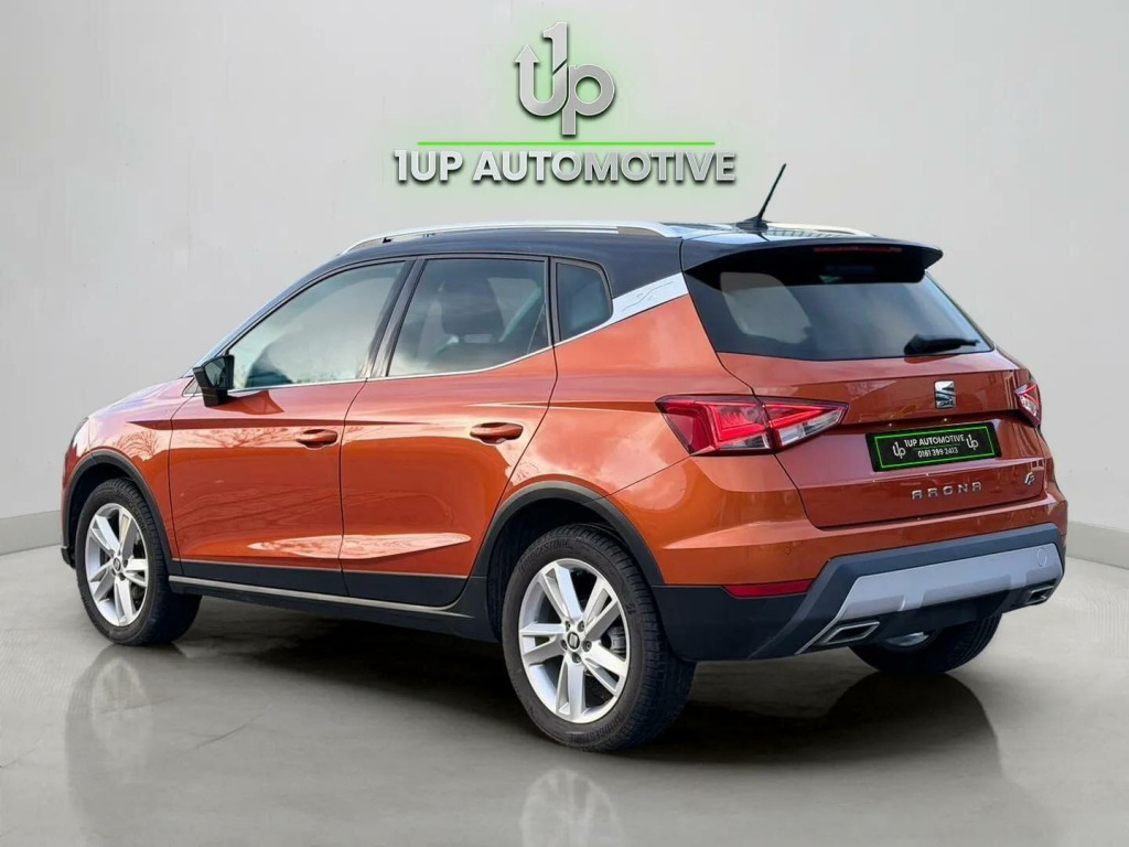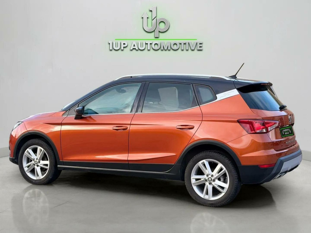 This 2019 SEAT Arona TSI FR boasts a full service history, with its last service completed on 23 January 2026 at 74,233 miles, ensuring excellent provenance. This stylish FR trim model is equipped with a 1.0 litre Euro 6 compliant petrol engine, offering an impressive fuel economy of 49 mpg. Notable features include Dual Zone Climate Control for personalised comfort, a Connectivity Pack Plus with Wireless Phone Charging, and Bluetooth Audio Streaming with a Handsfree System for seamless connectivity. For added convenience and safety, it also comes with Rear Parking Sensors and Full LED Headlights.The SEAT Arona TSI FR stands out with its low CO2 emissions, indicating a more environmentally conscious choice compared to similar vehicles. The inclusion of a 12 month warranty and 12 months MOT provided on purchase offers peace of mind for the new owner. This well maintained and feature rich Arona is ready for its next adventure. in alloy wheels - dynamic, active front head restraints, alarm with back-up horn, anti-lock braking system - abs, anti-theft roof antenna, auto dimming rear view mirror, auto-headlights, automatic warning lights, bi-colour roof, bluetooth audio streaming with handsfree system, body-coloured door handles, child locks on rear doors, chrome window trim, coming home - leaving home headlight function, connectivity pack plus, cruise control, dab - digital radio, dark tinted rear windows, digital clock, double boot floor, driver sunvisor with mirror and card holder, driver and front passenger airbags, dual zone climate control, dust and pollen filter, esc - electronic stability control with eba - emergency brake assist, electric windows - front and rear with one-touch and anti-squeeze, electrically adjustable folding and heated door mirrors, electro-mechanical power steering - speed-sensitive, electronic engine immobiliser, emergency tyre repair kit, exclusive flat-bottomed fr steering wheel and interior details, exhaust pipe - twin, fm-am radio, front assist, front courtesy light with front and rear reading lights, front fog lights, front grille frame in chrome, front passenger airbag de-activation, front side and curtain airbags, front and rear seatbelt reminder, full led headlights, gearshift indicator, height adjustable drivers seat, height adjustable front passenger seat, height and reach adjustable steering wheel, hill hold control, isofix points in outer rear seats with top tether anchorage points, illuminated boot, instrument lighting with brightness control, interior ambient light, interior chrome pack, interior footwell light, led daytime running lights, led licence plate lighting, led taillights, leather handbrake, leather steering wheel and gear knob, lights left on warning buzzer, locking wheel bolts, low fuel warning light, multi-collision braking system, multicoloured ambient lighting, outside temperature gauge, passenger sunvisor with mirror and card holder, rpm counter, rain sensing wipers, rear fog light, rear parking sensors, rear window wiper with washer, remote central locking with deadlocks, roof coloured door mirrors, roof rails - chrome, seat drive profile, seats - sports fr, six speakers, split folding rear seats - 60-40, sports suspension, three-point seatbelts on all rear seats, tiredness recognition system, trip computer, two cup holders in cabin, two folding remote keys with remote window opening-closing function, two front and three rear height-adjustable headrests, tyre pressure monitoring system, usb media cable, visible vin in windscreen, windshield wiper with intermittent control and potentiometer - four speeds