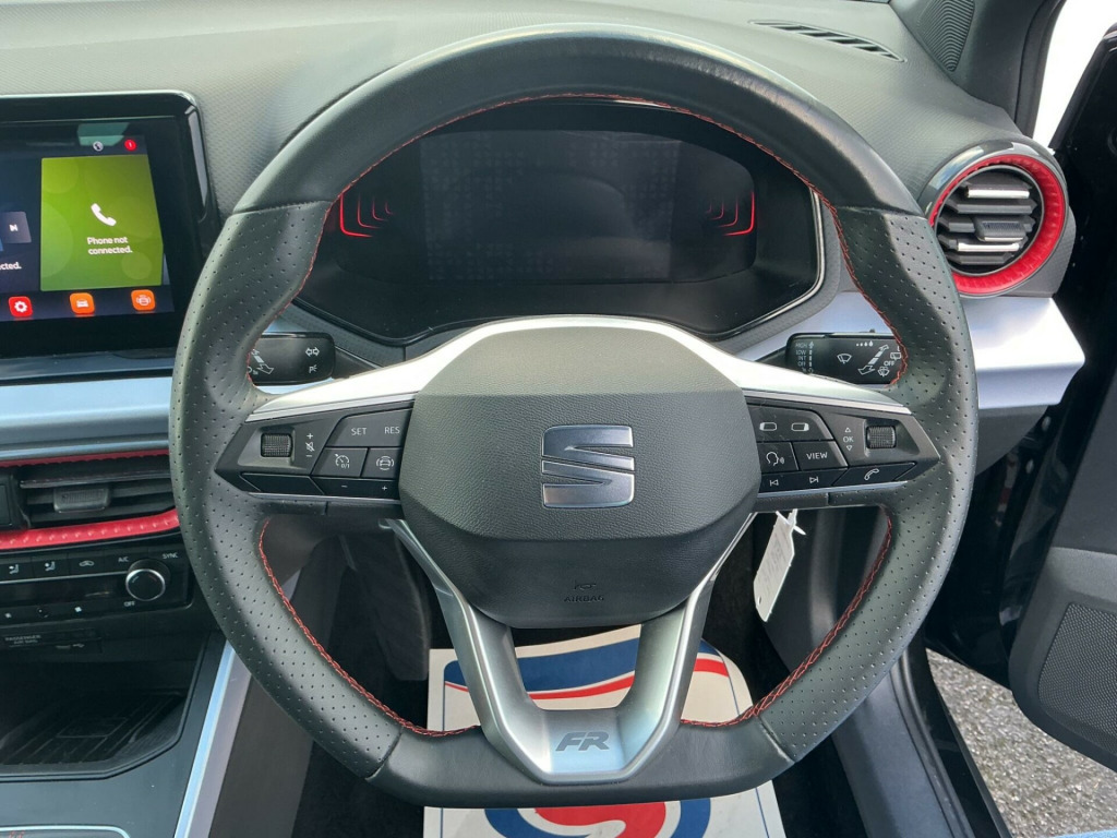 One owner from new, Full Seat service history, Balance of Seat warranty till April 2027, Guaranteed Mileage, All vehicles HPi checked, Always low prices. Southwick Car Centre specialise in the sale of one owner vehicles with full service history at a fantastic price. We are located in the village of Southwick near Trowbridge in Wiltshire on the A361 within 20 minutes of Westbury, Warminster, Frome, Bath, Melksham and within 40 minutes of Bristol, Swindon, Salisbury and the M4 (post code for sat nav BA149QN). We stock up to 50 one owner vehicles with full manufacturer service history priced at well below the suggested market value, price checked daily to insure we remain at the front on price providing our customers fantastic savings when buying their next car. Despite striving to achieve the very best prices across the UK quality remains at the forefront of our business, all vehicles are HPI checked, have guaranteed mileage, are fully inspected for quality and safety, supplied with a new MOT (where less than 6 months remains), fully valeted and we even subsidise the price of our warranties. Established in 1996 we have over 27 years experience in used vehicle sales. We open Monday - Friday 09.00-17.00 and Sat 09.00-14.00. For more information about one of our vehicles, to book a viewing, test drive or to reserve a vehicle please call us on 01225 777950. Southwick Car Centre offering an honest, friendly service and a large selection of one owner cars with full service history with guaranteed mileage at a fantastic price.. 17in Alloy Wheels - Dynamic, Dual Zone Climate Control, Cruise Control with Speed Limiter, 9.2in Touchscreen Display, Bluetooth Audio Streaming with Handsfree System, Aircare Filter, Alarm with Back-Up Horn, Anti-Lock Braking System - ABS, Auto Dimming Rear View Mirror, Black Interior Roof, Chrome Roof Rails and Window Surround, Coloured Air Vent - Daring Red, Contrast Roof, Dark Tinted Rear Windows, Digital Cockpit - 8in, Double Boot Floor, Driver and Front Passenger Airbags, EBA - Emergency Brake Assist and Front Assist, Electrically Adjustable Folding and Heated Door Mirrors, Electronic Engine Immobiliser, Electronic Stability Control - ESC, Emergency Tyre Repair Kit, Front Courtesy Light with Front Reading Lights, Front and Rear Electric Windows, Front and Rear Fog Lights with Cornering Function at Front, Front and Rear Seatbelt Reminder, Full LED Automatic Headlight, Full Link Smartphone Integration, Height Adjustable Front Seats, Hill Hold Control, ISOFIX Points in Outer Rear Seats with Top Tether Anchorage Points, Illuminated Air Vent Surrounds, Interior Ambient Light, Interior Chrome Pack, Interior Light in Footwell - Centre Console and Door Panel, LED Rear Taillights, Lane Keeping System, Licence Plate Lights, Locking Wheel Bolts, Perforated Leather Flat-Bottomed Steering Wheel with Red Stitching and FR Logo with Leather Gear Knob and Handbrake, Power Assisted Steering, Protective Side Moulding, Rain Sensing Wipers, Rear Fog Light, Rear Spoiler, Roof Coloured Door Mirrors, SEAT Connect - Safety - Service - Remote - Online, SEAT Connect Plus, SEAT Drive Profile, Safety and Driving Pack - Small, Side Airbag in Front with Curtain Airbag, Six Speakers, Split Folding Rear Seats - 60-40, Sunvisors with Mirror and Cardholder - Driver Side, Three-Point Seatbelts on All Rear Seats, Tiredness Recognition System, Titan Black Dashboard, Twin Exhaust Pipes, Two Front and Three Rear Height-Adjustable Headrests, Tyre Pressure Monitoring System, Wireless Phone Charger. Full dealership history