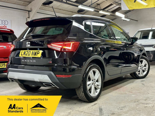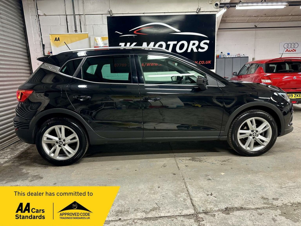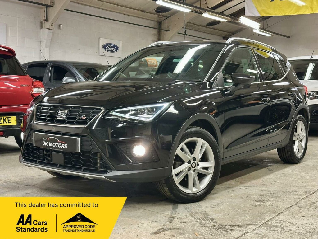 Ready to drive away today Seat Arona FR edition just been serviced and only 2 owners from new. Finished in metallic black, alloy wheels, Full LED Headlights, parking sensors, DRLs, subtle body styling. Interior finished in FR features with access to Android Auto and Apple CarPlay, and a Connectivity Pack Plus complete with wireless phone charging. Enjoy comfort on every journey with Dual Zone Climate Control and stay connected safely with the Bluetooth Audio Streaming and Handsfree System. Heated seats, touchscreen multimedia with sat nav, multifunction sport steering wheel, ambient lighting, the list goes on. 2 keys, buy with confidence from an award winning, AA Approved dealership with a variety of warranty products available. Viewing available seven days a week by appointment (evening and weekends available), nationwide delivery. Same day finance decisions in house at competitive rates, nil deposit options, please inquire with a simple call to drive away today. Drive away insurance, part exchange welcome, top prices paid. Member of the Motor Trade trading standards and motoring ombudsman code of practice.
