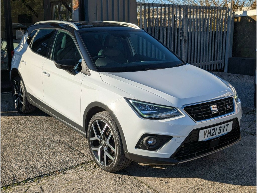 For Sale at Six Ways Car Sales Ltd, Llanelli2021 (21) SEAT Arona 1.0 TSI FR Sport DSG - Registration: YH21 SVT£13,990 30,000 Miles Petrol Automatic White ULEZ CompliantA sporty and high-spec SEAT Arona FR Sport finished in crisp white with contrast roof combining sharp styling, premium features, and an efficient DSG automatic drivetrain.Key Features & Spec:• 1.0 TSI Petrol - 110PS - Euro 6 (ULEZ Compliant)• 7-Speed DSG Automatic Gearbox• 18'' Performance Alloy Wheels• Full LED Headlights & LED Rear Lights• Digital Cockpit Display• Heated Front Sport Seats• Perforated FR Flat-Bottom Steering Wheel• Dual-Zone Climate Control• Full Link Smartphone Integration (Apple CarPlay/Android Auto)• Bluetooth Audio & DAB Radio• Contrast Roof & Chrome Exterior Pack• Dark Tinted Rear Windows• Front & Rear Electric Windows• Electrically Folding & Heated Door Mirrors• Rear Parking Sensors• Interior Ambient Lighting• Rain-Sensing Wipers & Auto Dimming Mirror• Cruise Control with Speed Limiter• ISOFIX Child Seat Mounts (Outer Rear Seats)• Split-Folding Rear Seats (60/40)• SEAT Drive Profile (Selectable Driving Modes)• Tyre Pressure Monitoring System3 Months Warranty Included (Extended Warranty Available)Finance Available (Subject to Status)Part Exchange WelcomeA stylish, sporty, and tech-packed FR Sport Arona offering comfort, efficiency, and a premium driving feel.Call now to arrange a viewing or test drive: 01554 556 557, in alloy wheels - performance, am-fm radio with dab - digital audio broadcasting, aircare filter, alarm with back-up horn, anti-lock braking system - abs, auto dimming rear view mirror, black interior roof, bluetooth audio streaming with handsfree system, chrome roof rails and window surround, coming home - leaving home headlight function, connectivity pack plus, contrast roof, cruise control with speed limiter, dark tinted rear windows, digital cockpit, double boot floor, driver and front passenger airbags, dual zone climate control, eba - emergency brake assist and front assist, electrically adjustable folding and heated door mirrors, electronic engine immobiliser, electronic stability control - esc, emergency tyre repair kit, front courtesy light with front reading lights, front grille frame in chrome, front sports seats, front and rear electric windows, front and rear seatbelt reminder, full led headlights, full link smartphone integration, heated front seats, height adjustable front seats, hill hold control, isofix points in outer rear seats with top tether anchorage points, interior ambient light, interior chrome pack, interior light in footwell - centre console and door panel, led daytime running lights, led rear taillight with led licence plate light, leatherette dashboard, locking wheel bolts, perforated leather flat-bottomed steering wheel with red stitching and fr logo with leather gear knob and handbrake, power assisted steering, protective side moulding, rpm counter, rain sensing wipers, rear parking sensors, roof coloured door mirrors, seat connect - safety - service - remote - online, seat drive profile, side airbag in front with curtain airbag, six speakers, split folding rear seats - 60-40, steering wheel mounted gearshift paddles, three-point seatbelts on all rear seats, tiredness recognition system, twin exhaust pipes, two front and three rear height-adjustable headrests, tyre pressure monitoring system