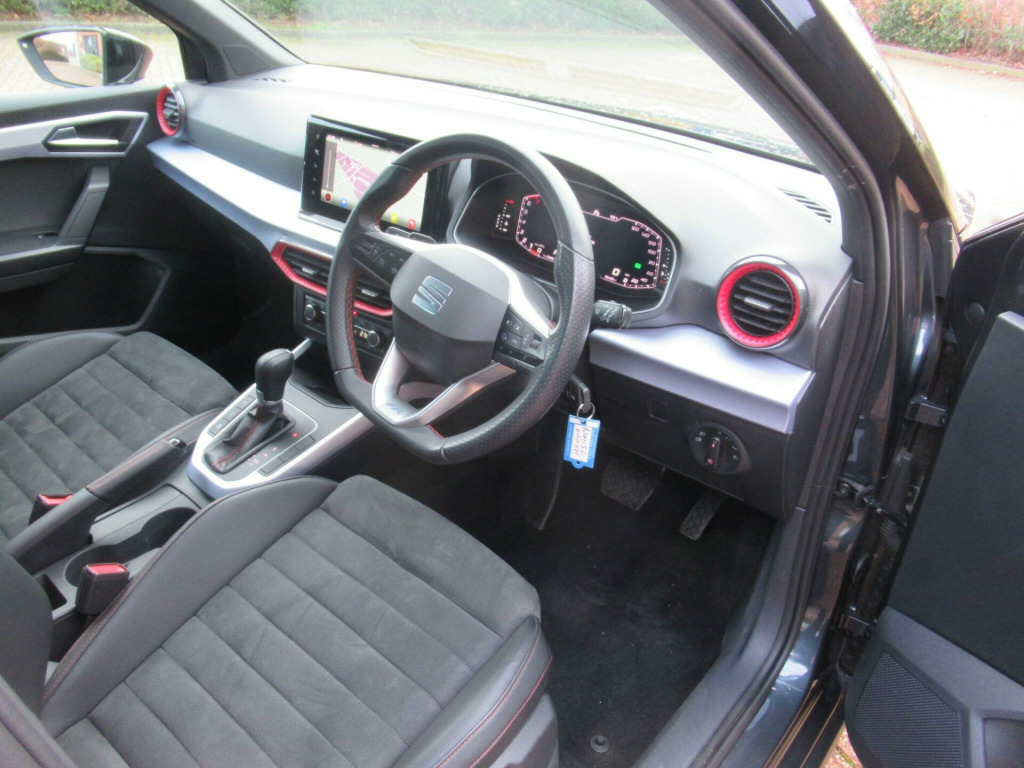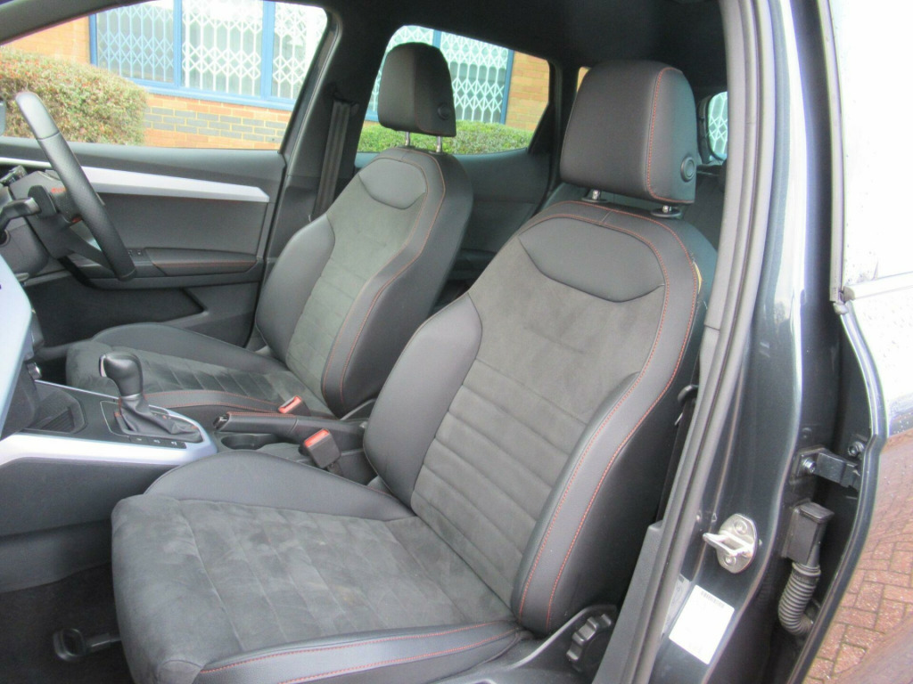 EURO 6 COMPLIANT ULEZ COMPLIANT This is Another One Owner Great Value Car We Can Offer to The Marketplace This SEAT Arona 1.0 TSI FR Sport DSG Euro 6 (s/s) 5dr Looks Fantastic Metallic Grey With Heated Front Seat GREAT SPEC 9.2in Touchscreen Display Alarm with Back-Up Horn Anti-Lock Braking System - ABS Bluetooth Audio Streaming with Handsfree System Chrome Roof Rails and Window Surround Coloured Air Vent - Daring RedComing Home - Leaving Home Headlight Function 18in Alloy Wheels Performance - Cosmo Grey Matt AND MUCH MORE .SERVICE HISTORY.... This car will come with 3 months warranty protection cover for peace of mind. *** NO ADMIN FEES ** information is supplied by CAPHPI and may vary to the actual car. This data does not form any part of a buying contact. Please check specification prior to purchase in alloy wheels - performance - cosmo grey matt, 9.2in touchscreen display, aircare filter, alarm with back-up horn, anti-lock braking system - abs, auto dimming rear view mirror, black interior roof, bluetooth audio streaming with handsfree system, chrome roof rails and window surround, coloured air vent - daring red, coming home - leaving home headlight function, contrast roof, cruise control with speed limiter, dark tinted rear windows, digital cockpit - 10in, double boot floor, driver and front passenger airbags, dual zone climate control, eba - emergency brake assist and front assist, electrically adjustable folding and heated door mirrors, electronic engine immobiliser, electronic stability control - esc, emergency tyre repair kit, front comfort seats, front courtesy light with front reading lights, front seats with back storage pockets, front and rear electric windows, front and rear fog lights with cornering function at front, front and rear seatbelt reminder, full led automatic headlight, full link smartphone integration, heated front seats, height adjustable front seats, hill hold control, isofix points in outer rear seats with top tether anchorage points, illuminated air vent surrounds, interior ambient light, interior chrome pack, interior light in footwell - centre console and door panel, led daytime running lights, led rear taillights, lane keeping system, licence plate lights, locking wheel bolts, perforated leather flat-bottomed steering wheel with red stitching and fr logo with leather gear knob and handbrake, power assisted steering, protective side moulding, rain sensing wipers, rear parking sensors, rear spoiler, roof coloured door mirrors, seat connect - safety - service - remote - online, seat drive profile, side airbag in front with curtain airbag, six speakers, split folding rear seats - 60-40, sunvisors with mirror and cardholder - driver side, three-point seatbelts on all rear seats, tiredness recognition system, titan black dashboard, twin exhaust pipes, two front and three rear height-adjustable headrests, tyre pressure monitoring system, wireless phone charger
