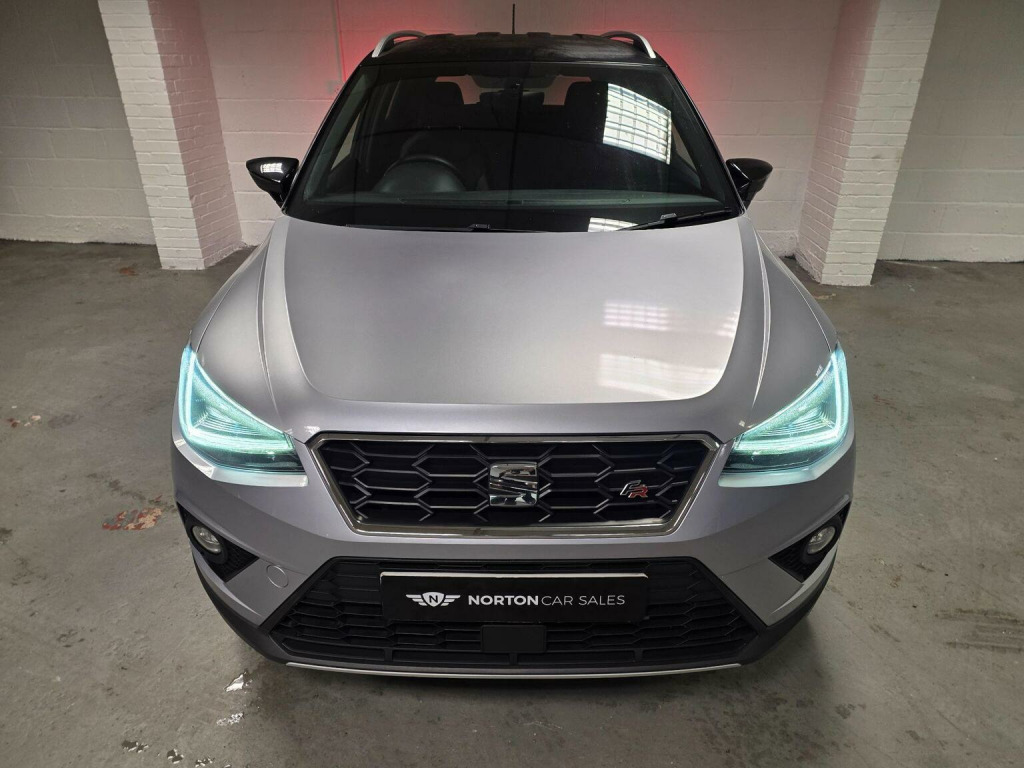 Stunning SEAT Arona 1.0 TSI finished in metallic silver fitted with many extras like:, *Sport Alcantara seats, *Digital dashboard, *Touchscreen navigation media, *Bluetooth with audio streaming, *18 Alloys, *Xenon and LED lights, *Multi function leather steering wheel, *Auto lights/wipers, *Ambient interior lights, *Power fold mirrors, *Voice control, *Digital climate control, *DAB radio, *USB/SD card/CD player, *Front assist, *Plus much more. Comes with 2x keys, owners handbooks and service history, |Norton car sales is VAT registered and fully FCA approved so we can tailor a finance package to suit your needs and budget|Receive a part exchange value for your vehicle and get pre-approved for the finance before leaving home|All major debit and credit cards welcome|Part exchange welcome|Warranties available from £149 up to 36 months|Nationwide delivery service available|We are based in Dukinfield Cheshire|follow us on Instagram @nortoncarsales