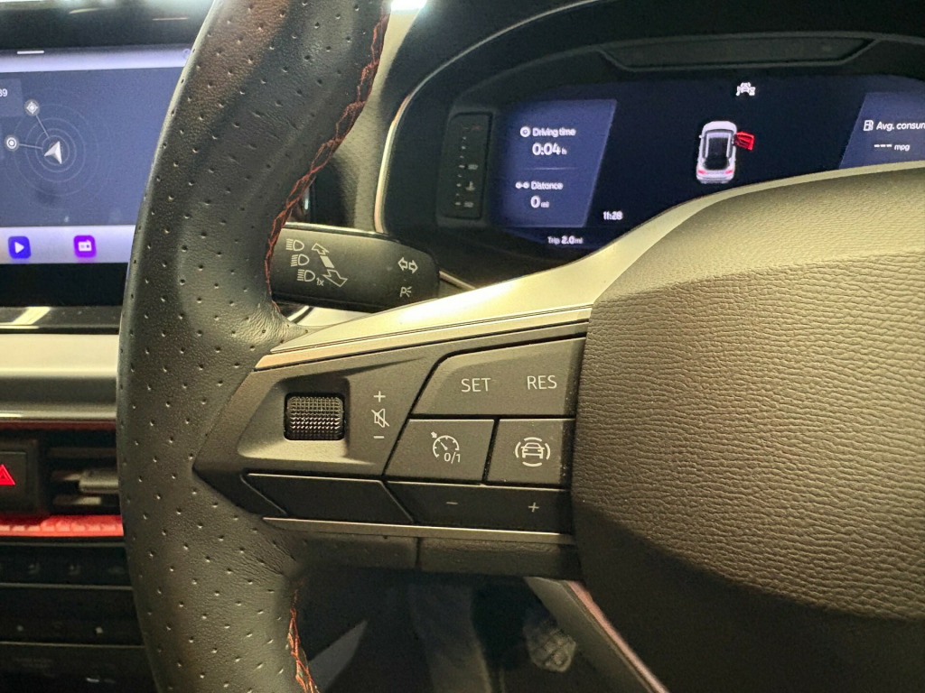 in alloy wheels - performance - cosmo grey matt, chrome roof rails and window surround, contrast roof, dark tinted rear windows, electrically adjustable folding and heated door mirrors, emergency tyre repair kit, front and rear electric windows, locking wheel bolts, protective side molding, rear spoiler, roof coloured door mirrors, twin exhaust pipes, 9.2in touchscreen display, bluetooth audio streaming with handsfree system, full link smartphone integration, seat connect - safety - service - remote - online, six speakers, wireless phone charger, aircare filter, auto dimming rear view mirror, black interior roof, coloured air vent - daring red, digital cockpit - 10in, double boot floor, dual zone climate control, front comfort seats, front courtesy light with front reading lights, front seats with back storage pockets, heated front seats, height adjustable front seats, illuminated air vent surrounds, interior ambient light, interior chrome pack, interior light in footwell - centre console and door panel, perforated leather flat-bottomed steering wheel with red stitching and fr logo with leather gear knob and handbrake, rain sensing wipers, split folding rear seats - 60-40, sunvisors with mirror and cardholder - driver side, titan black dashboard, two front and three rear height-adjustable headrests, alarm with back-up horn, anti-lock braking system - abs, driver and front passenger airbags, eba - emergency brake assist and front assist, electronic engine immobiliser, electronic stability control - esc, front and rear seatbelt reminder, hill hold control, isofix points in outer rear seats with top tether anchorage points, lane keeping system, licence plate lights, side airbag in front with curtain airbag, three-point seatbelts on all rear seats, coming home - leaving home headlight function, front and rear fog lights with cornering function at front, full led automatic headlight, led daytime running lights, led rear taillights, cruise control with speed limiter, power assisted steering, rear parking sensors, seat drive profile, tiredness recognition system, tyre pressure monitoring system