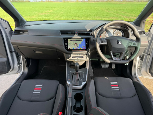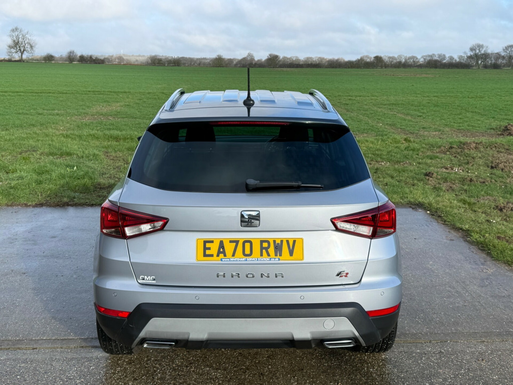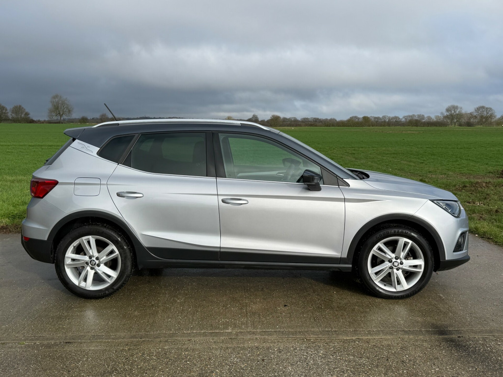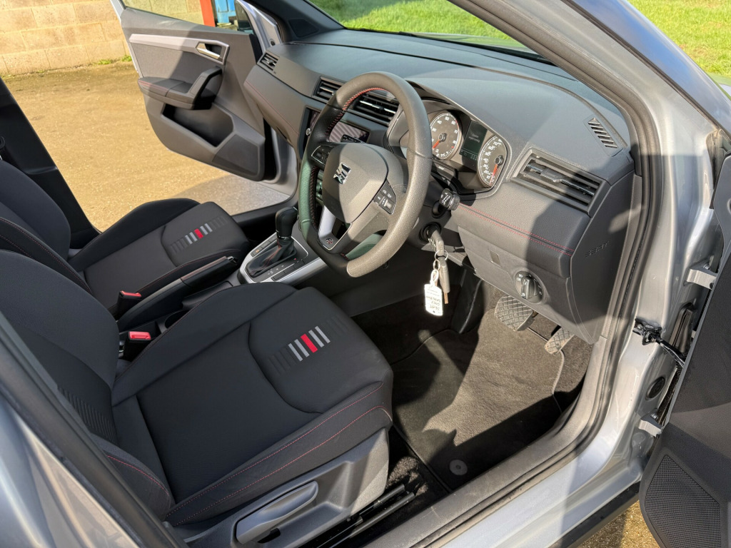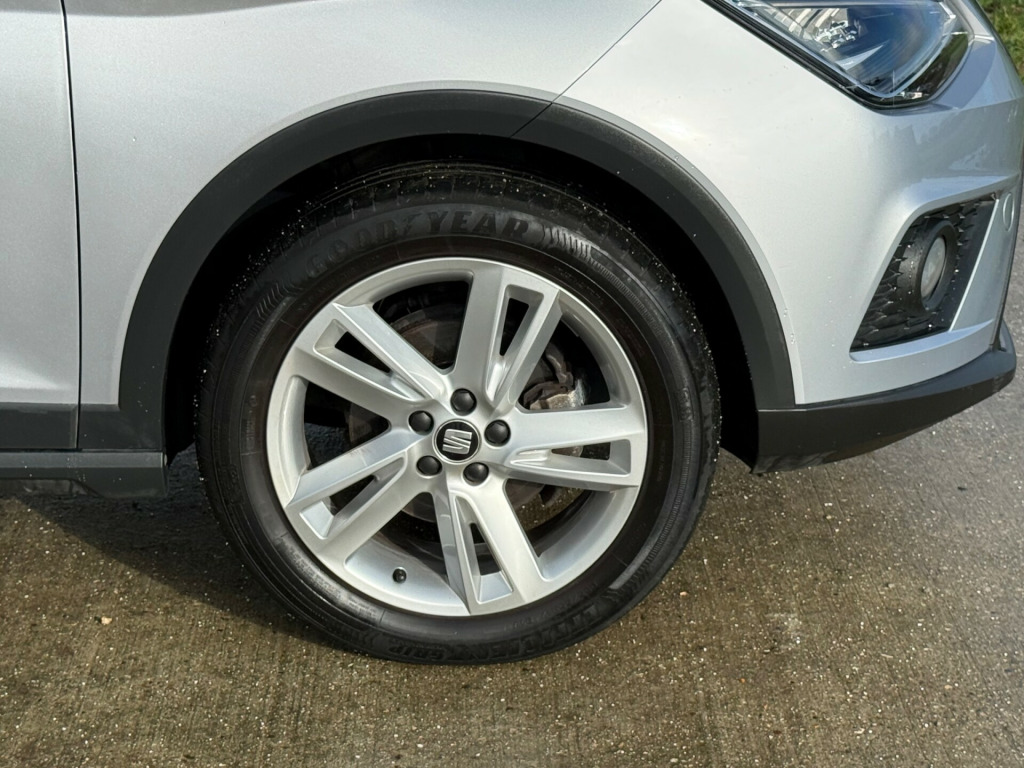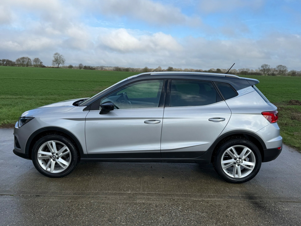 Here at Whitehart Service Station we are delighted to offer this 1 private owner from new Seat Arona FR 1.0 Petrol DSG Automatic, finished in metallic Silver with only 19515 miles and a Full Service History. Specification highlights include Bluetooth audio streaming and hands-free system, DAB digital radio, and Full Link smartphone integration for connectivity on the road. Comfort and convenience are provided by dual-zone climate control, cruise control, rain-sensing wipers, and rear parking sensors. Safety systems such as front assist, electronic stability control, multiple airbags and much more. This car is currently being prepared for sale so the photos will follow shortly. in alloy wheels - dynamic, chrome roof rails and window surround, contrast roof, dark tinted rear windows, electrically adjustable folding and heated door mirrors, emergency tyre repair kit, front grille frame in chrome, front and rear electric windows, locking wheel bolts, protective side moulding, roof coloured door mirrors, twin exhaust pipes, am-fm radio with dab - digital audio broadcasting, bluetooth audio streaming with handsfree system, connectivity pack plus, full link smartphone integration, seat connect - safety - service - remote - online, six speakers, aircare filter, auto dimming rear view mirror, black interior roof, double boot floor, dual zone climate control, front courtesy light with front reading lights, front sports seats, height adjustable front seats, interior ambient light, interior chrome pack, interior light in footwell - centre console and door panel, leatherette dashboard, perforated leather flat-bottomed steering wheel with red stitching and fr logo with leather gear knob and handbrake, rain sensing wipers, split folding rear seats - 60-40, steering wheel mounted gearshift paddles, two front and three rear height-adjustable headrests, alarm with back-up horn, anti-lock braking system - abs, driver and front passenger airbags, eba - emergency brake assist and front assist, electronic engine immobiliser, electronic stability control - esc, front and rear seatbelt reminder, hill hold control, isofix points in outer rear seats with top tether anchorage points, side airbag in front with curtain airbag, three-point seatbelts on all rear seats, coming home - leaving home headlight function, full led headlights, led daytime running lights, led rear taillight with led licence plate light, cruise control with speed limiter, power assisted steering, rpm counter, rear parking sensors, seat drive profile, tiredness recognition system, tyre pressure monitoring system