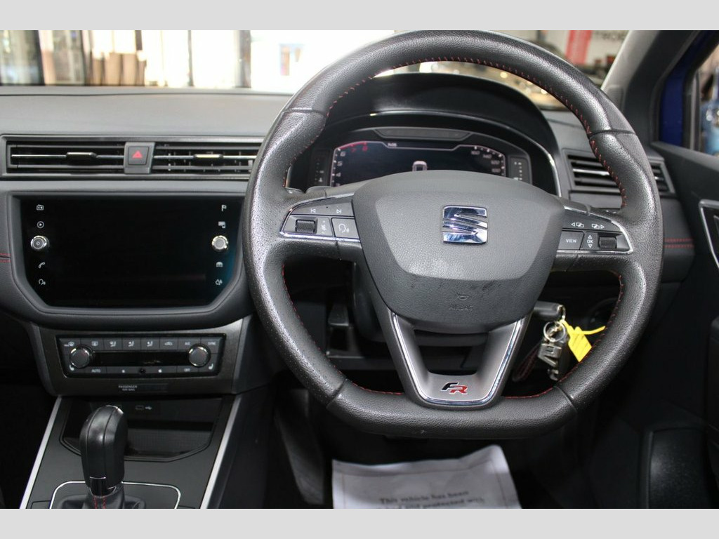 Discover the stylish and versatile SEAT ARONA 1.0 TSI GPF FR Sport SUV — the perfect blend of performance, design, and practicality. Finished in stunning Metallic Sapphire Blue with a Grey roof and matching wing mirrors, this eye-catching vehicle is sure to turn heads wherever you go. Enhance your drive with its bold 2-tone 18-inch alloy wheels, Privacy Glass for added sophistication and security, and striking Chrome twin exhausts that add a sporty touch. The FR Sport trim delivers a dynamic look combined with premium features. Step inside to experience luxury and comfort with heated leather and suede seats, ensuring a cozy ride in all seasons. Stay connected and entertained with Apple CarPlay, DAB radio, Bluetooth, and a comprehensive infotainment system. Convenience is at your fingertips with cruise control, climate control, all-round electric windows, and electric wing mirrors. This SEAT ARONA comes fully prepped, including a service and advisory-free MOT, so you can drive away with peace of mind. Whether you're navigating city streets or exploring the countryside, this SUV offers the perfect combination of style, performance, and practicality. Don't miss out — contact us today to schedule a test drive and make this exceptional SEAT ARONA yours! 18in Alloy Wheels - Performance, AM-FM Radio with DAB - Digital Audio Bro, Aircare Filter, Alarm with Back-Up Horn, Anti-Lock Braking System - ABS, Auto Dimming Rear View Mirror, Black Interior Roof, Bluetooth Audio Streaming with Handsfree, Chrome Roof Rails and Window Surround, Coming Home - Leaving Home Headlight Fun, Connectivity Pack Plus, Contrast Roof, Cruise Control with Speed Limiter, Dark Tinted Rear Windows, Digital Cockpit, Double Boot Floor, Driver and Front Passenger Airbags, Dual Zone Climate Control, EBA - Emergency Brake Assist and Front A, Electrically Adjustable Folding and Heat, Electronic Engine Immobiliser, Electronic Stability Control - ESC, Emergency Tyre Repair Kit,