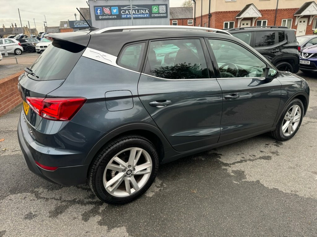 SEAT Arona 1.0 TSI GPF FR – Apple CarPlay | Parking Assistance | Long MOT Petrol | Manual | Euro 6 | 115 PS | 44,890 Miles | MOT Until 22-10-2026 This SEAT Arona 1.0 TSI GPF FR offers sporty styling, excellent efficiency, and modern technology in a compact yet practical SUV package. With just 44,890 miles from new and two owners, it's a well-maintained and desirable example. Powered by a 1.0-litre turbocharged petrol engine producing 115 PS, it delivers a smooth and responsive drive that's both fun and economical. The car has been serviced four times up to 44k miles, showing consistent maintenance and care. The FR trim brings a sportier look and feel, complemented by a strong feature list including satellite navigation, Bluetooth, Apple CarPlay, and parking assistance for added convenience. Finished in grey with a dark cloth interior, this Arona blends dynamic performance with SEAT's stylish design — a fantastic choice for those seeking a reliable, modern, and efficient small SUV with great equipment and a long MOT until October 2026. 2020 (20) SEAT ARONA 1.0 TSI GPF FR SUV 5dr is offered to you for sale in Pudsey, Leeds, finished in grey this SEAT ARONA 1.0 TSI GPF FR SUV 5dr is one of many handpicked used cars that used car dealer, Catalina of Stanningley, Pudsey, Leeds have available for sale. 17in Alloy Wheels - Dynamic, Active Front Head Restraints, Alarm with Back-Up Horn, Anti-Lock Braking System - ABS, Auto Dimming Rear View Mirror, Auto-Headlights, Automatic Warning Lights, Black Interior Roof, Bluetooth Audio Streaming with Handsfree, Chrome Window Trim, Coming Home - Leaving Home Headlight Fun, Connectivity Pack Plus, Contrast Roof, Cruise Control, DAB - Digital Radio, Dark Tinted Rear Windows, Digital Clock, Double Boot Floor, Driver Sunvisor with Mirror and Card Hol, Driver and Front Passenger Airbags, Dual Zone Climate Control, Dust and Pollen Filter, ESC - Electronic Stability Control with , Electrically Adjustable Folding and Heat, Electro-Mechanical Power Steering -