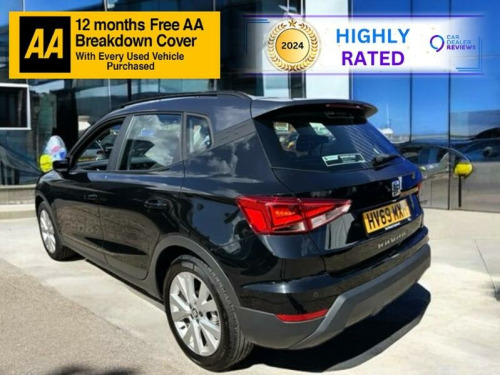 This 2019 SEAT Arona TSI SE Technology boasts an MOT valid until September 2026 and a recent service in September 2025, offering excellent peace of mind. This Euro 6 compliant 1.0 litre petrol model comes with a clear vehicle history check, ensuring its provenance is sound. The SE Technology trim level includes essential Air Conditioning for your comfort.With an impressive fuel economy of 48 miles per gallon, this Arona is more economical to run than many similar vehicles. Its low CO2 emissions also contribute to lower running costs and a reduced environmental impact, making it a sensible choice for everyday driving. s, air conditioning, alloy wheels, central locking, electric windows, panoramic sunoof, power assisted steering, 17in alloy wheels, bluetooth, brake assist, cruise control, cup holders, daytime running lights, engine immobiliser, esp, folding rear seats, front airbags, front fog lights, hill-start assist, isofix anchor point, led lights, parking assistance, parking sensors, radio, safety belts, safety belts rear, satellite navigation, side impact airbags, start stop system, steering wheel controls, surround sound system, voice control, apple carplay, v5 registration document
