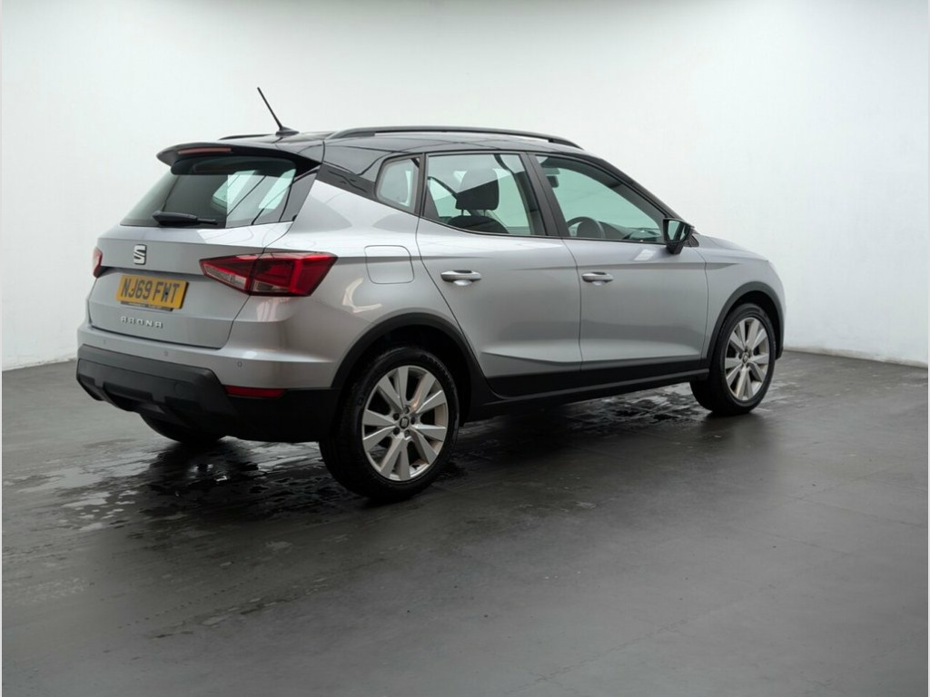 17" alloys, Bluetooth, Contrast roof, Cruise control and Rear parking sensors. 5 services - last service done at 42813 miles on 11/09/2024. This 2019 SEAT Arona TSI SE Technology boasts a clear vehicle history check, offering you peace of mind. This stylish compact SUV is equipped with a 1.0 litre petrol engine and meets Euro 6 emission standards. For your convenience, it features Bluetooth audio streaming with a handsfree system, Full Link smartphone integration compatible with Android Auto and Apple CarPlay, and automatic headlights. Stay comfortable with air conditioning and enjoy the ease of wireless phone charging thanks to the Connectivity Pack Plus. The SEAT Arona is designed for modern driving, offering an impressive fuel economy of 48 miles per gallon, which is excellent compared to similar vehicles. Its low CO2 emissions also contribute to its appeal. With an MOT valid until September 2026, this Arona provides a reliable and well equipped option for your next car. 17in Alloy Wheels - Dynamic, Active Front Head Restraints, Air Conditioning, Anti-Lock Braking System - ABS, Auto-Headlights, Automatic Warning Lights, Black Window Trim, Bluetooth Audio Streaming with Handsfree, Body Coloured Door Mirrors, Comfort Suspension, Connectivity Pack Plus, Contrast Roof, Cruise Control, DAB - Digital Radio, Digital Clock, Dimming Interior Rear View Mirror, Double Boot Floor, Driver and Front Passenger Airbags, Driver Sunvisor with Mirror and Card Hol, Dust and Pollen Filter, Electrically Adjustable Door Mirrors, Electro-Mechanical Power Steering - Spee, Electronic Engine Immobiliser, Emergency Tyre Repair Kit, ESC - Electronic Stability Control with , FM-AM Radio,