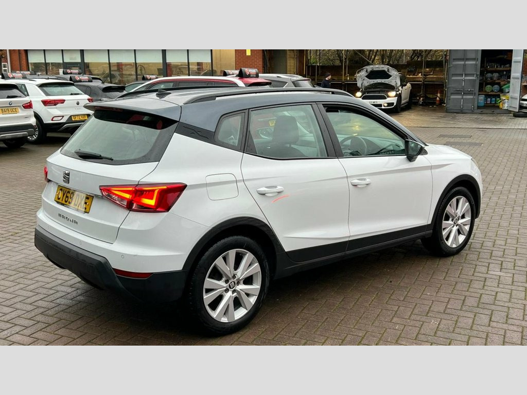 This 2019 69 SEAT Arona TSI SE Technology is a superb example of a well maintained compact SUV. GENUINE EXAMPLE, DRIVES SUPERBLY, HPI CLEAR, VERY PRACTICAL, COMES WITH A FRESH MOT/SERVICE & WARRNTY. This Arona is powered by an efficient 1.0 litre petrol engine, this Euro 6 compliant model offers a compelling blend of style and practicality. It comes equipped with rear parking sensors and parking assistance for easier manoeuvring, alongside Full Link smartphone integration, bringing Android Auto and Apple CarPlay to your fingertips. Enjoy seamless connectivity with Bluetooth audio streaming and a handsfree system, plus the convenience of wireless phone charging thanks to the Connectivity Pack Plus. Comfort is assured with air conditioning, making every journey a pleasant experience. The SEAT Arona TSI SE Technology stands out with its impressive fuel economy, achieving a highlight of 51 miles per gallon, which indicates it is more economical than many similar vehicles. Furthermore, its low insurance group rating suggests lower running costs, and its low CO2 emissions highlight its environmental consideration compared to other cars in its class. This combination of efficiency, affordability, and modern technology makes this Arona a sensible and enjoyable choice. 17in Alloy Wheels - Dynamic, Active Front Head Restraints, Air Conditioning, Anti-Lock Braking System - ABS, Auto-Headlights, Automatic Warning Lights, Black Window Trim, Bluetooth Audio Streaming with Handsfree, Body Coloured Door Mirrors, Comfort Suspension, Connectivity Pack Plus, Contrast Roof, Cruise Control, DAB - Digital Radio, Digital Clock, Dimming Interior Rear View Mirror, Double Boot Floor, Driver Sunvisor with Mirror and Card Hol, Driver and Front Passenger Airbags, Dust and Pollen Filter, ESC - Electronic Stability Control with , Electrically Adjustable Door Mirrors, Electro-Mechanical Power Steering - Spee, Electronic Engine Immobiliser, Emergency Tyre Repair Kit, FM-AM Radio,